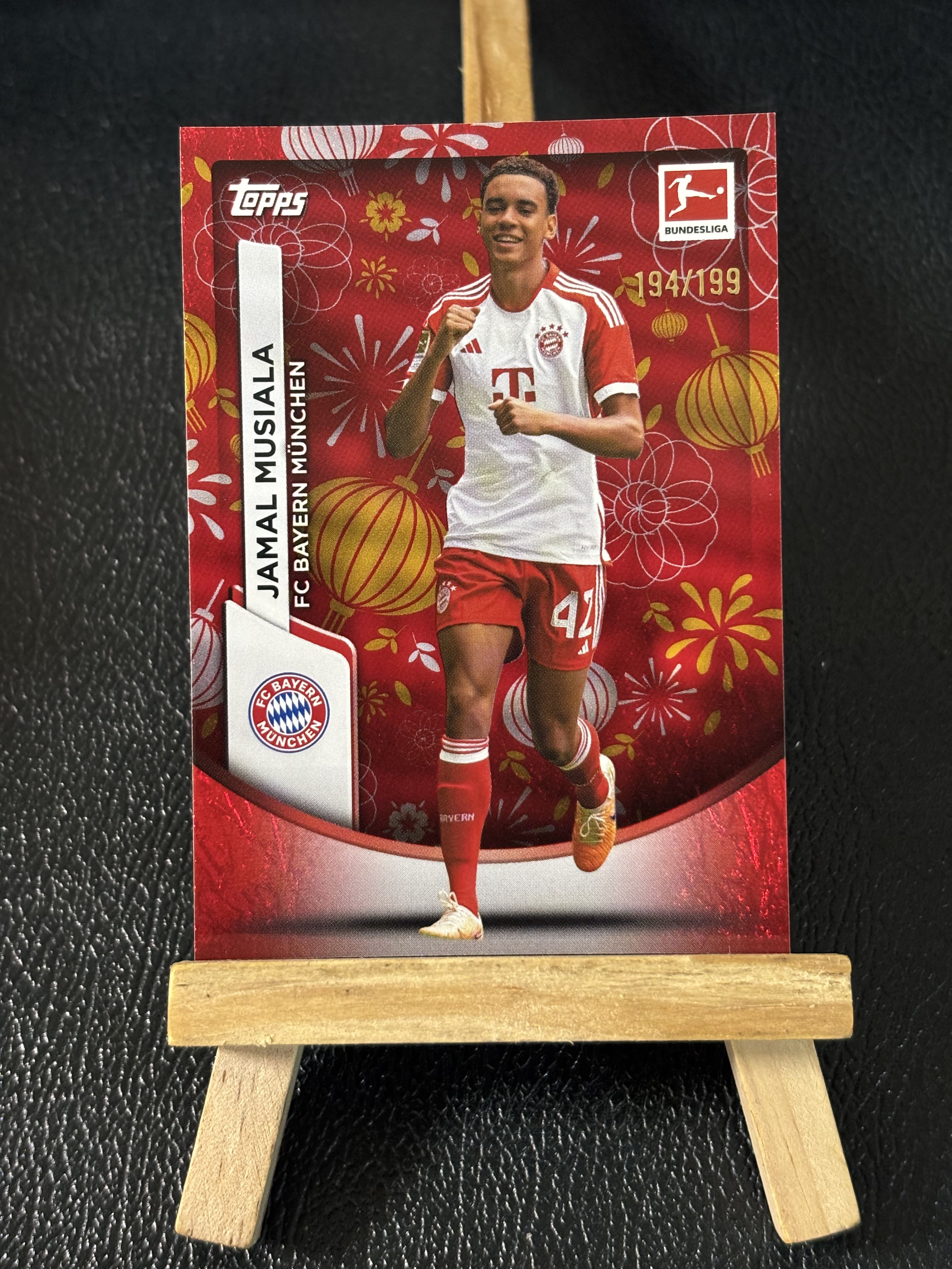 2024 Topps Chrome Jamal Musiala 穆夏拉 德国 小鹿斑比 拜仁 新春折 199编 碧玉 欧冠 银折 实卡精美 收藏必备 卡品如图 七七代卖