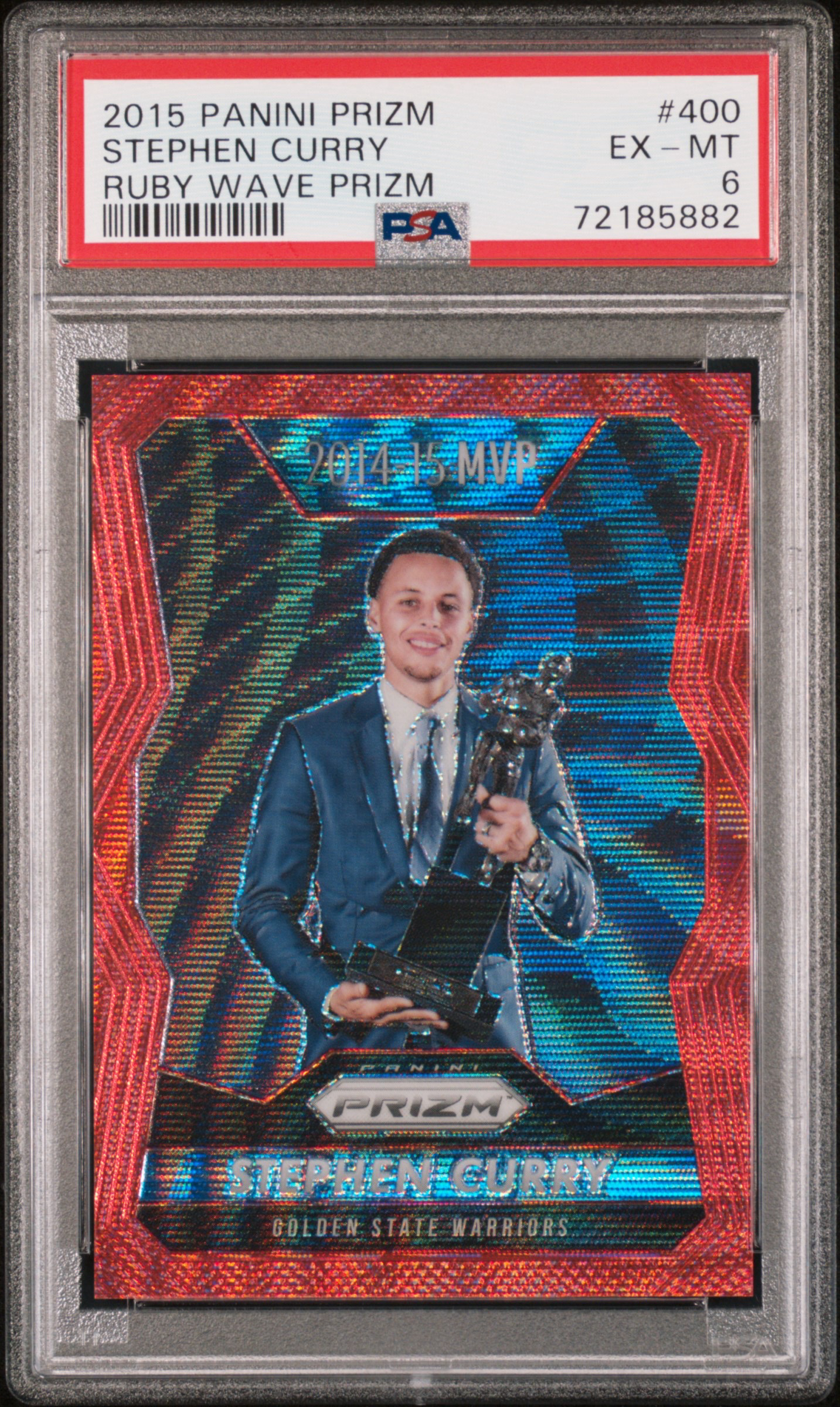 2015 Panini Prizm Stephen Curry 『壹Q拍卖 』 斯蒂芬 库里 MVP捧杯 350编 红博文折射 选图纪念意义重大 PSA评级 勇士总冠军