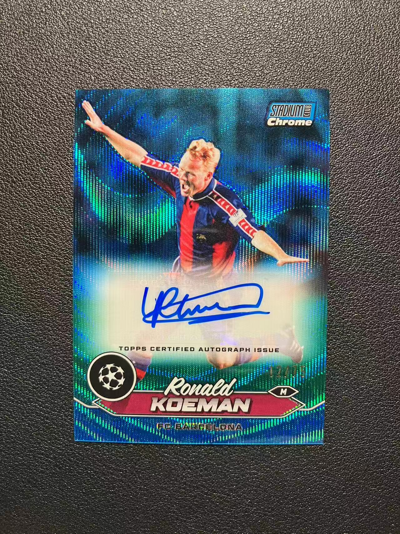 2024 Topps Stadium Club Chrome Ronald Koeman 欧冠竞技场 罗纳德-科曼 12/75编 蓝波纹折签 签字 巴塞罗那 巴萨 荷兰 传奇名宿 卡品如图 B037