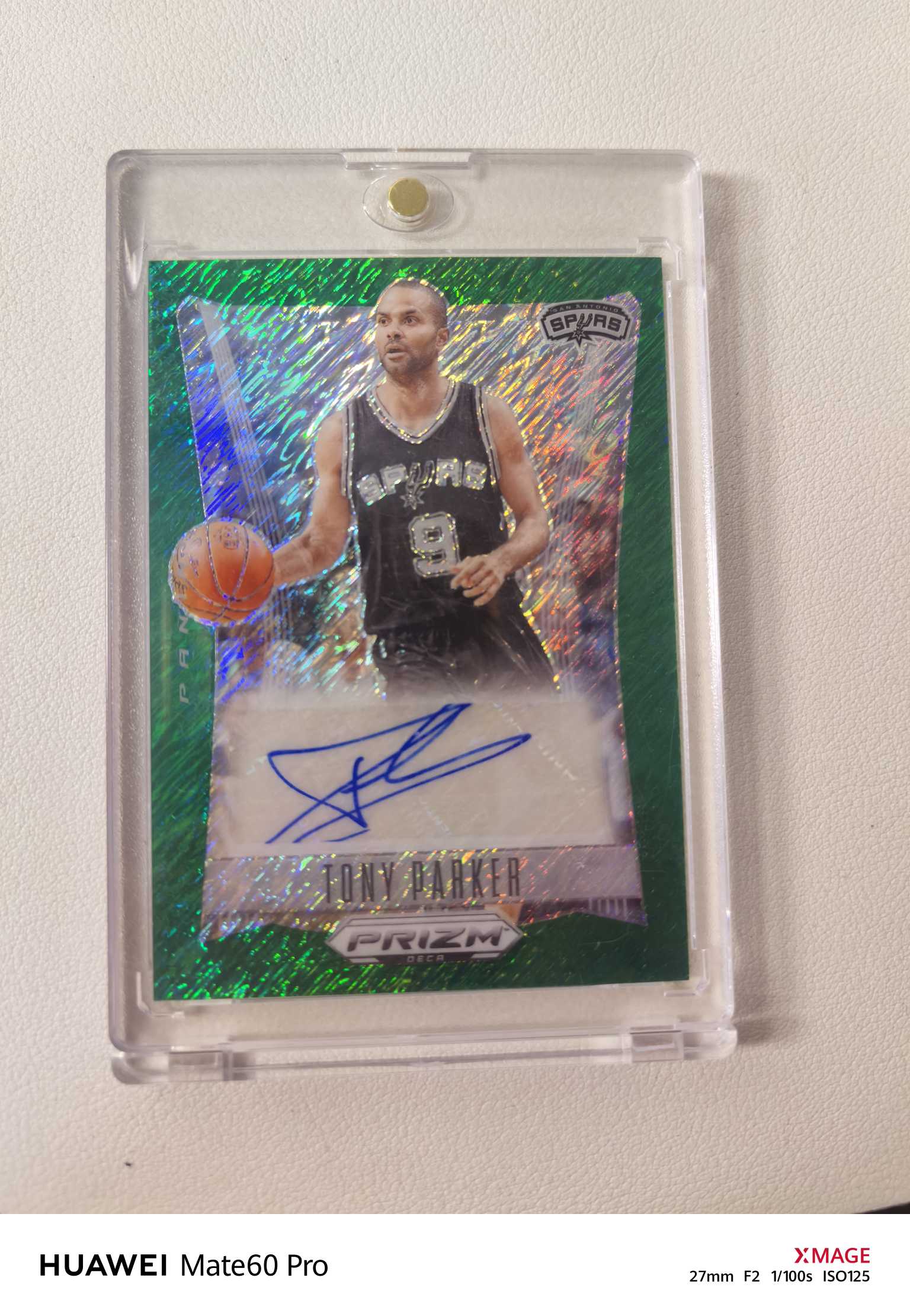 【逍遥拍卖】(辉总彭)23-24帕尼尼 prizm系列 马刺队 Tony Parker 托尼 帕克03/ 15编 签名 签字 绿shimmer折 极其稀有 能力强 实卡好看 印刷)