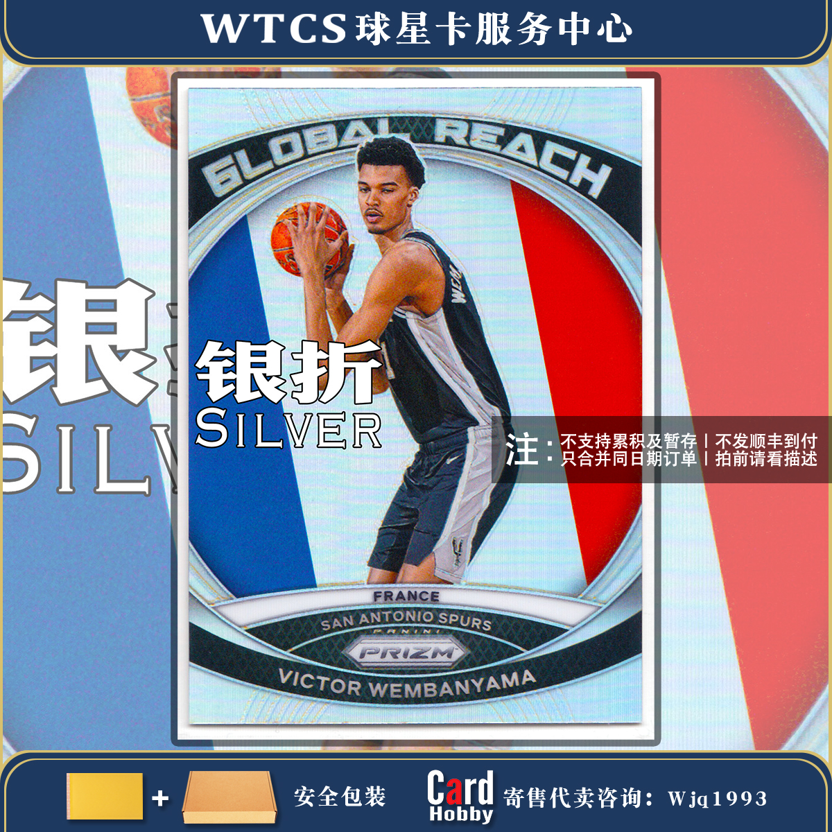 『Wjack拍卖』2023-24 Panini Prizm Victor Wembanyama 维克托 文班亚马 马刺 RC 新秀卡 Global Reach 全球影响力特卡 银折 普折 第3张 卡面细微划痕 介意勿拍 LT89585