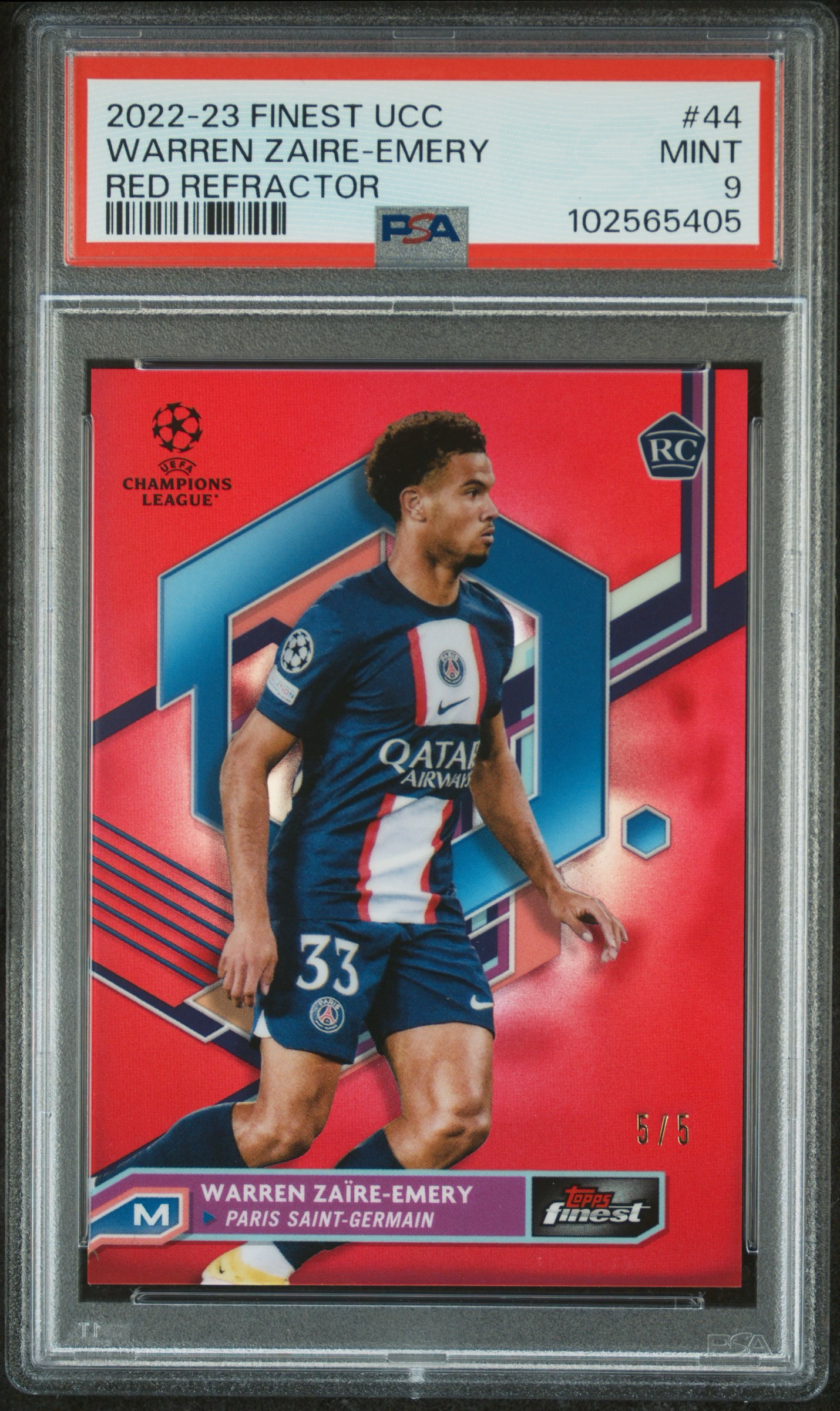 2022-23 Topps Finest Warren Zaïre-Emery RC 扎伊尔 埃梅里 rc 新秀 尾编 5/5 巴黎圣日耳曼 大巴黎 法国 姆巴佩 杜埃 登贝莱 队友 欧冠 法甲 冠军