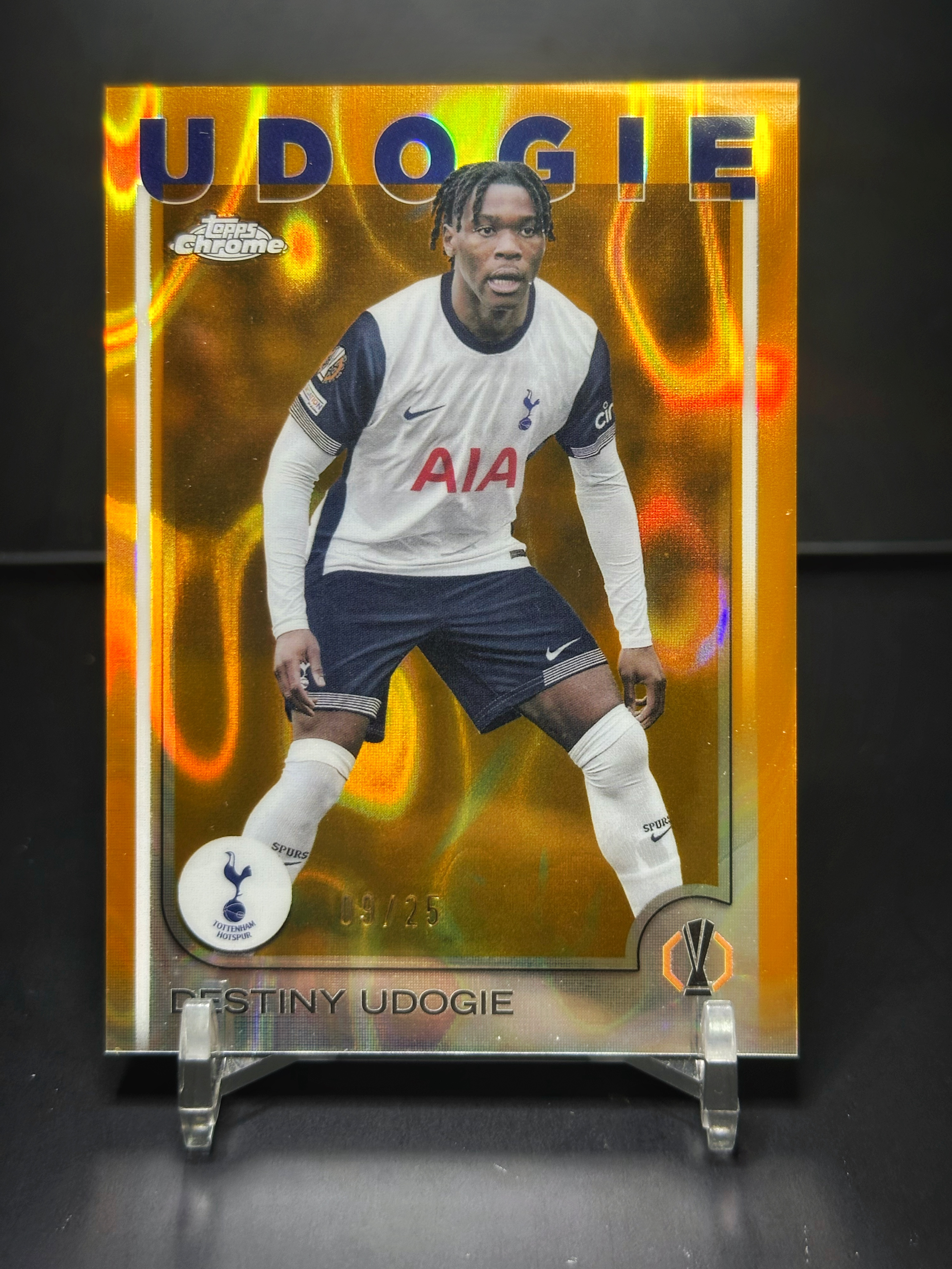 2025 Topps Chrome Destiny Udogie 欧冠TC 乌多吉 托特纳姆热刺 09/25编 低编 橙熔岩折 卡品如图 实卡超美 收藏必备