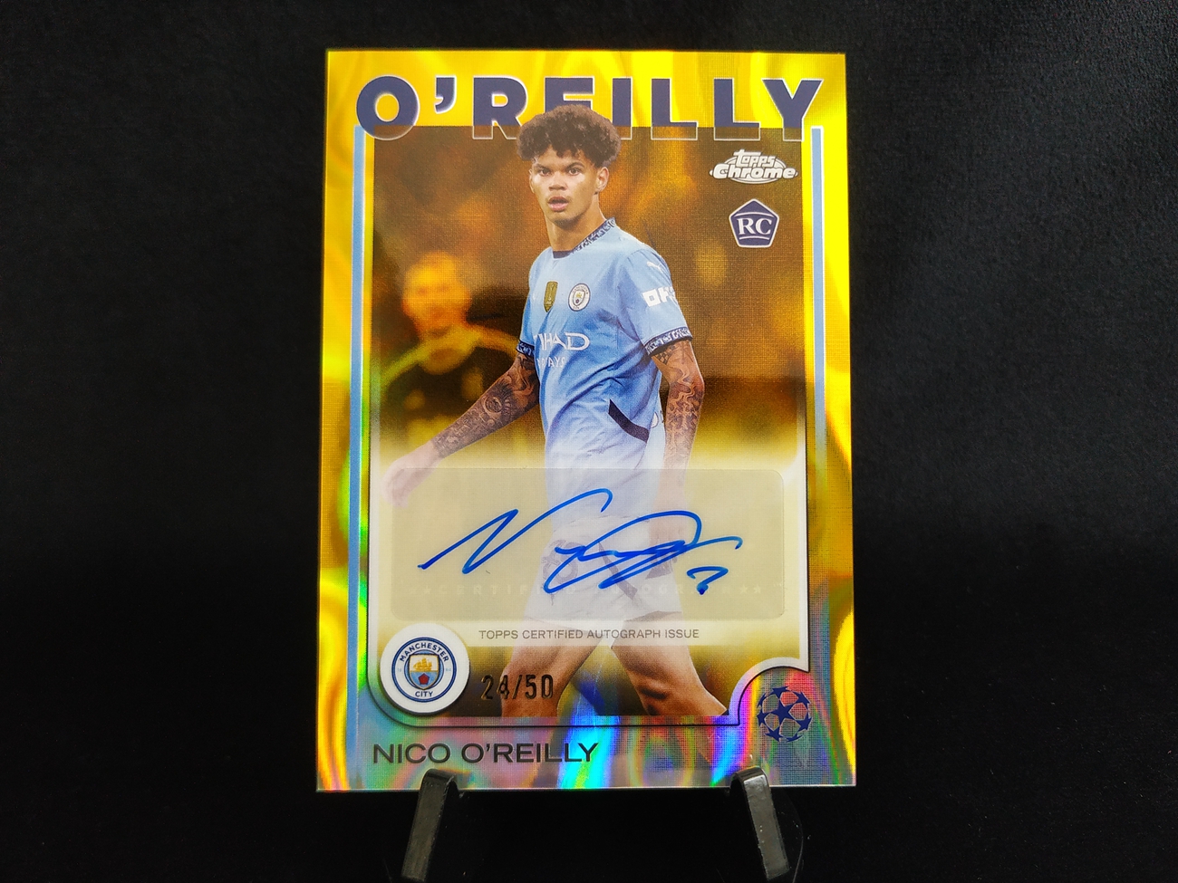 6-6【钢蛋儿拍卖】wdsd 235 topps 2024-25 欧冠 欧战 Chrome 曼城 RC 新秀 金熔岩折 签字 50编 尼科 奥赖利 Nico O Reilly 卡品如图
