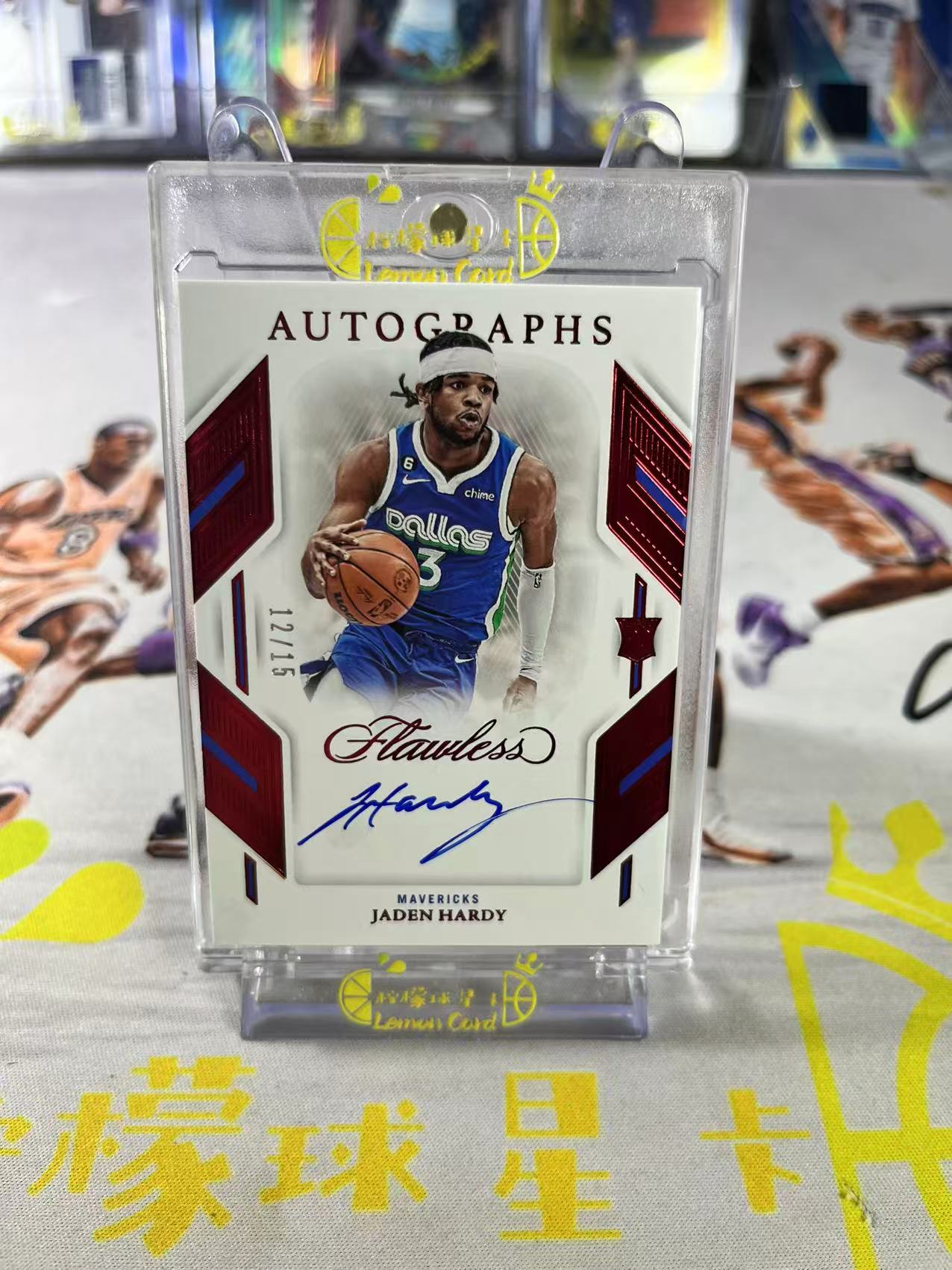 2022-23 Panini Flawless Jaden Hardy 【柠檬球星卡拍卖】独行侠 杰登 哈迪 新秀 RC 15编 签字 红折 折射 手提 微瑕如图 #回忆