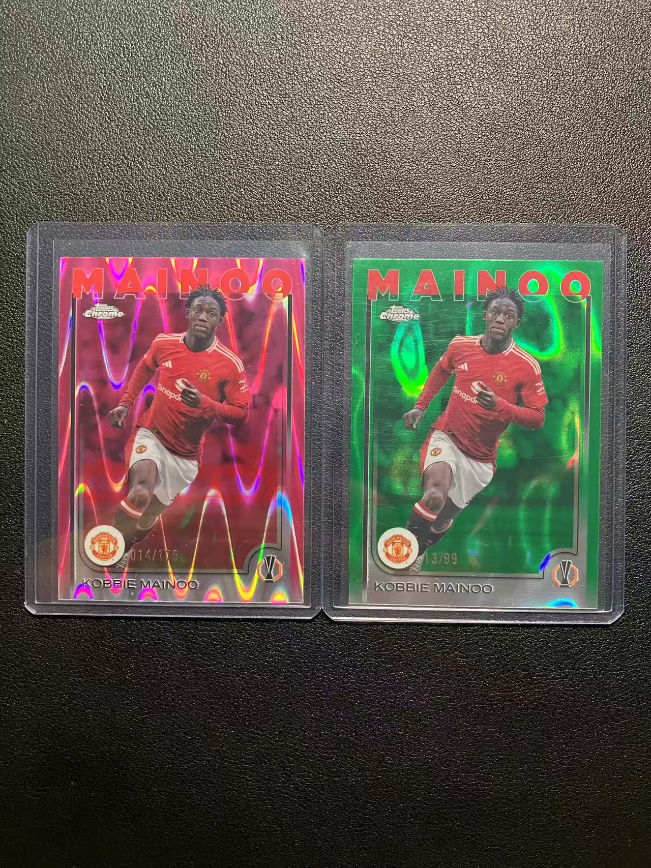 2025 Topps Chrome Kobbie Mainoo 欧冠TC系列 科比-梅努 99编 绿折+175编 粉波纹折 曼联 英格兰 天才中场 Lot不保卡品 B127