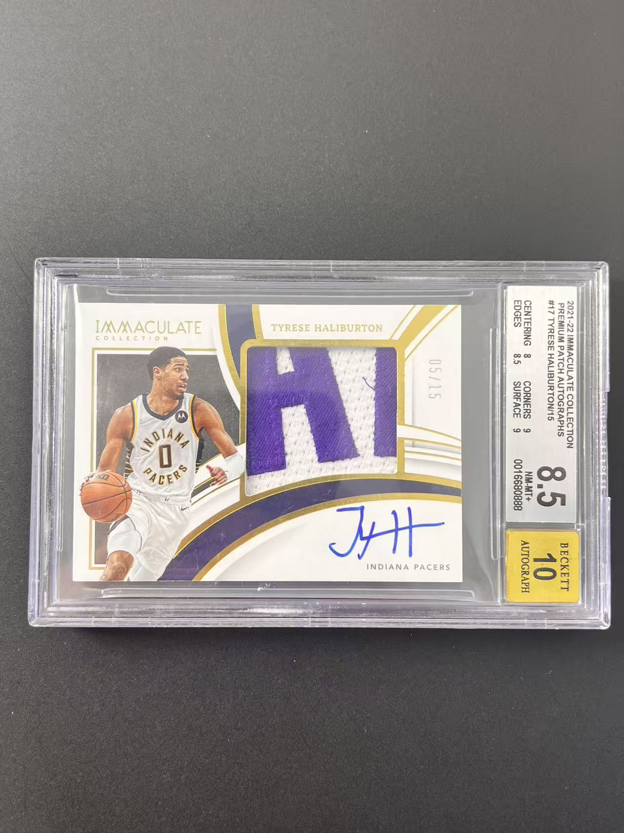 2021-22 Panini Immaculate Tyrese Haliburton【卡老鼠代卖】爱咪咪 步行者 哈利伯顿 哈里伯顿 PPA 签字卡签 05/15编 BGS评级8.5/10分 寄付