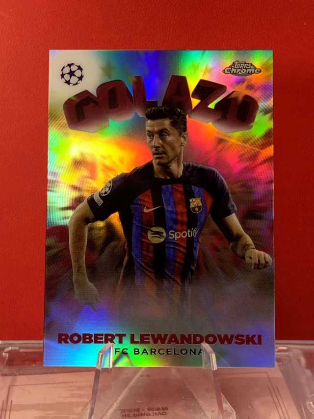 (老末精品代拍) E18 2023 Topps chrome Robert Lewandowksi 莱万多夫斯基 巴萨 欧冠TC Golazo 世界波特卡 银折 顺丰寄付 两小号可合并