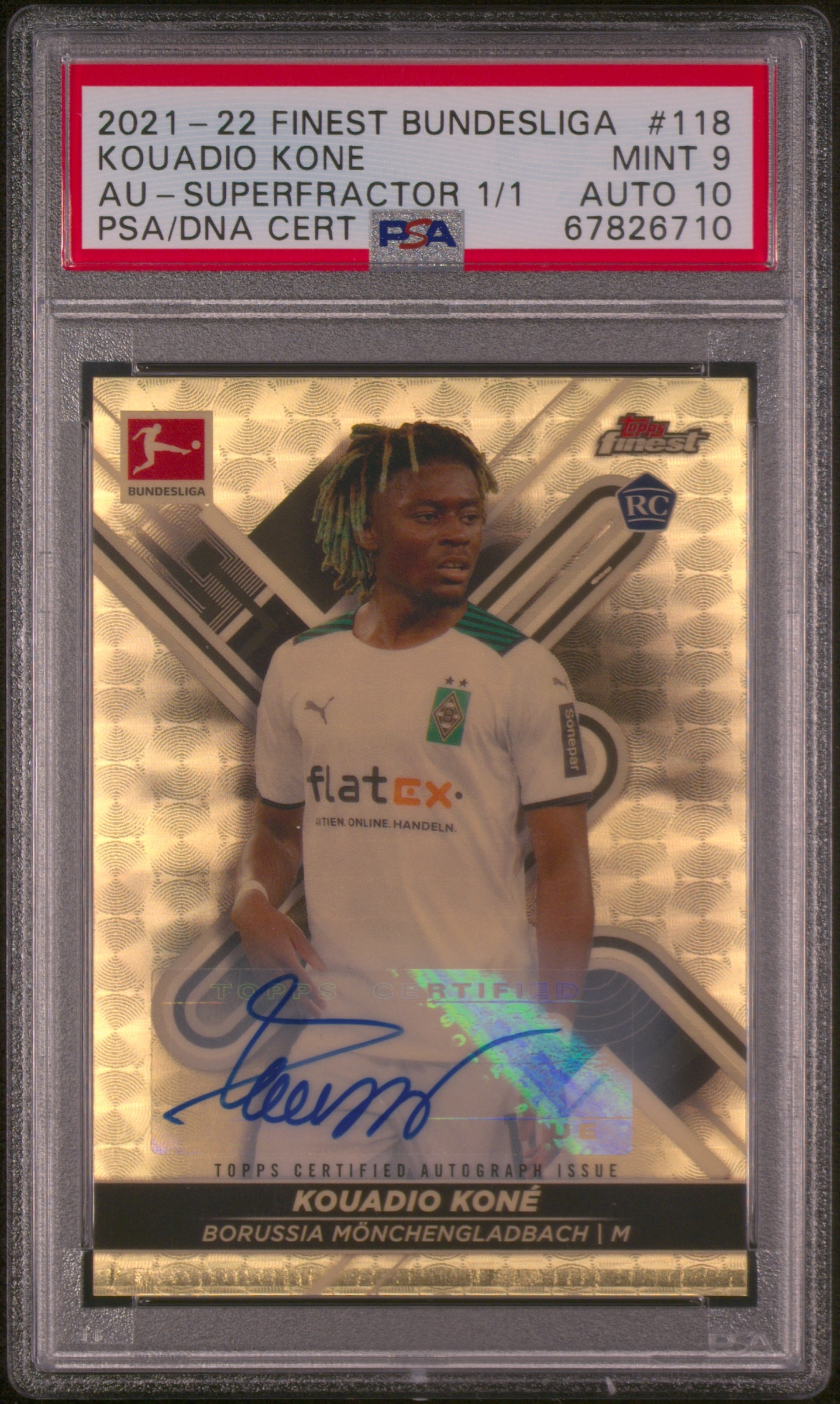 2021-2022 Topps TOPPS FINEST BUNDESLIGA KOUADIO KONE 1/1 科内 RC 爆金 PSA9 完美签字 法国国家队 核心中场 罗马核心 豪门猎物 超级新秀