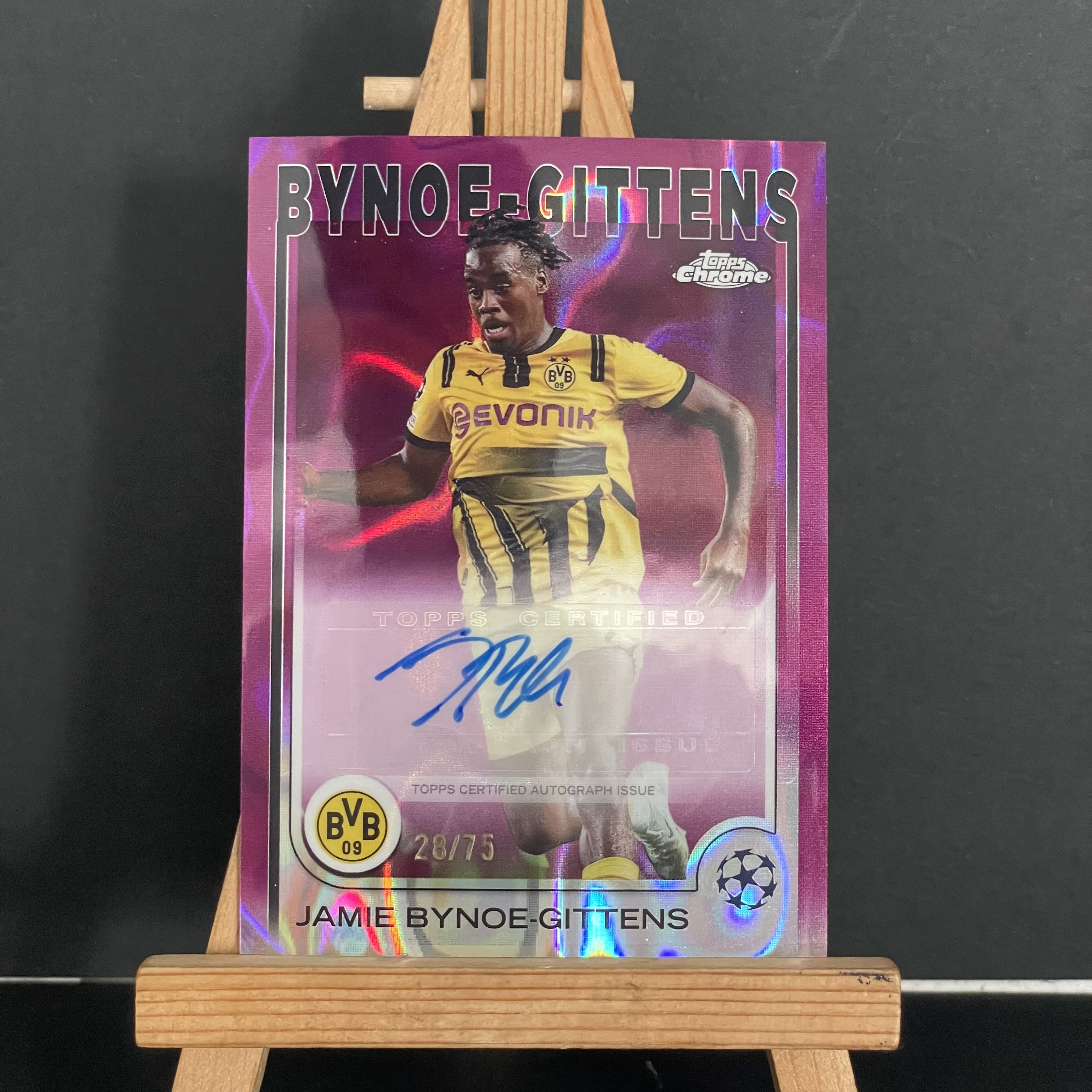 2024-25 Topps Chrome Jamie Bynoe-Gittens 欧冠 TC 多特蒙德 拜诺 吉腾斯 28/75编 紫熔岩折 折射 签字 贴签 完美签字 卡品如图 收藏必备 4175