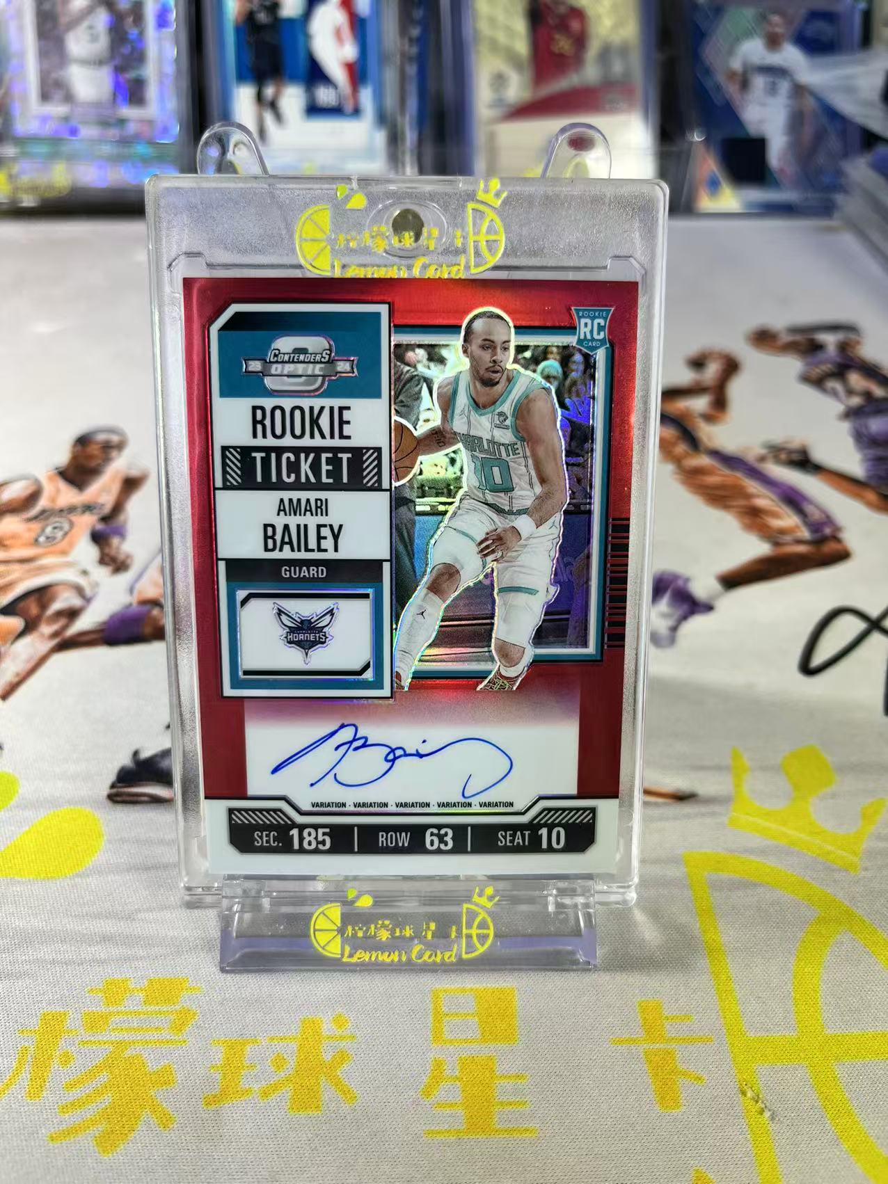 2023-24 Panini Contenders Amari Bailey 【柠檬球星卡拍卖】黄蜂 阿马里 贝利 新秀 RC 99编 签字 红折 折射 球票 微瑕如图 #通总