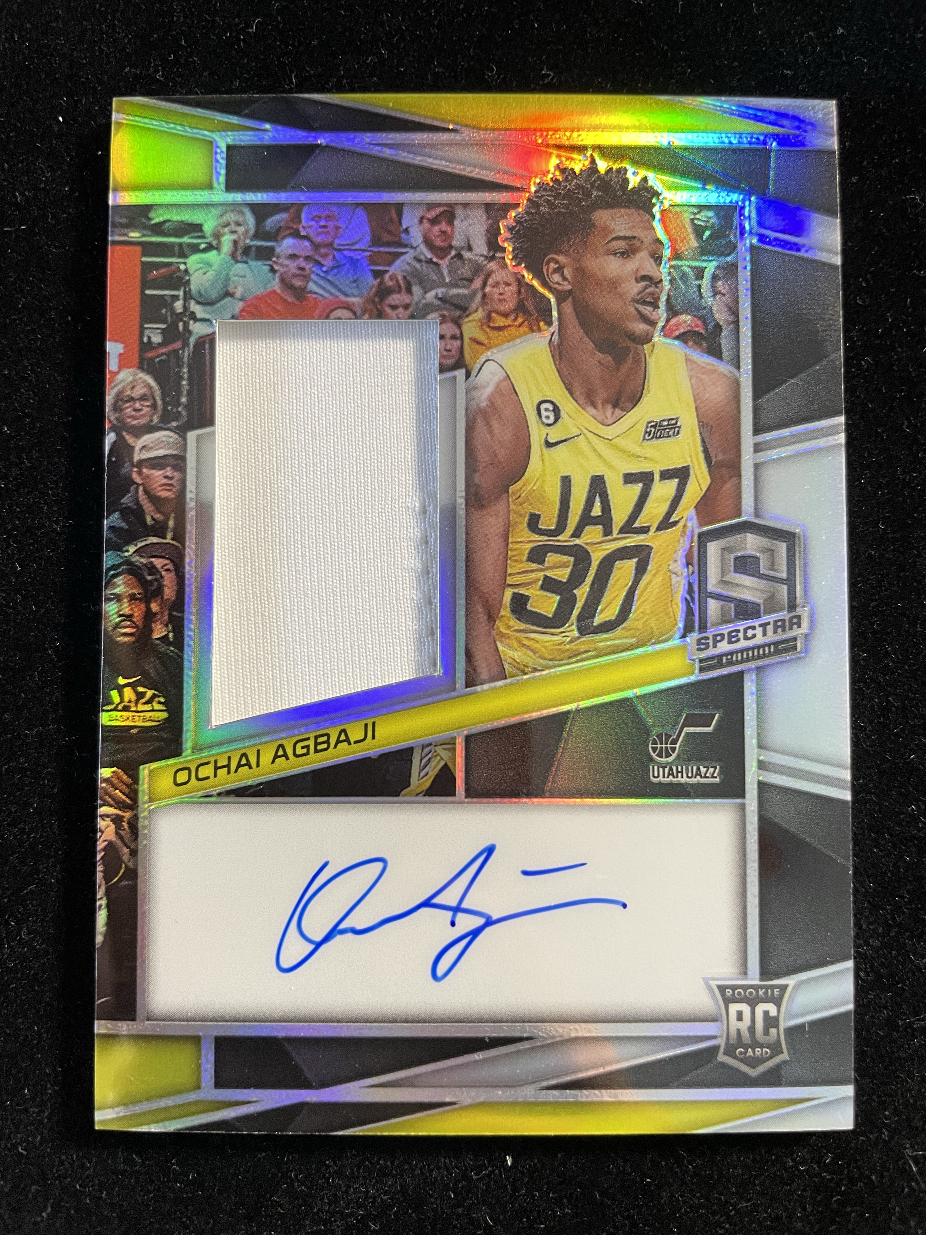 2022-23 Panini Spectra Ochai Agbaji RC 【茄子代拍】光谱 爵士 新秀 奥查伊 阿巴吉 199编 RJA 球衣 签字 银折 卡品如图 #M