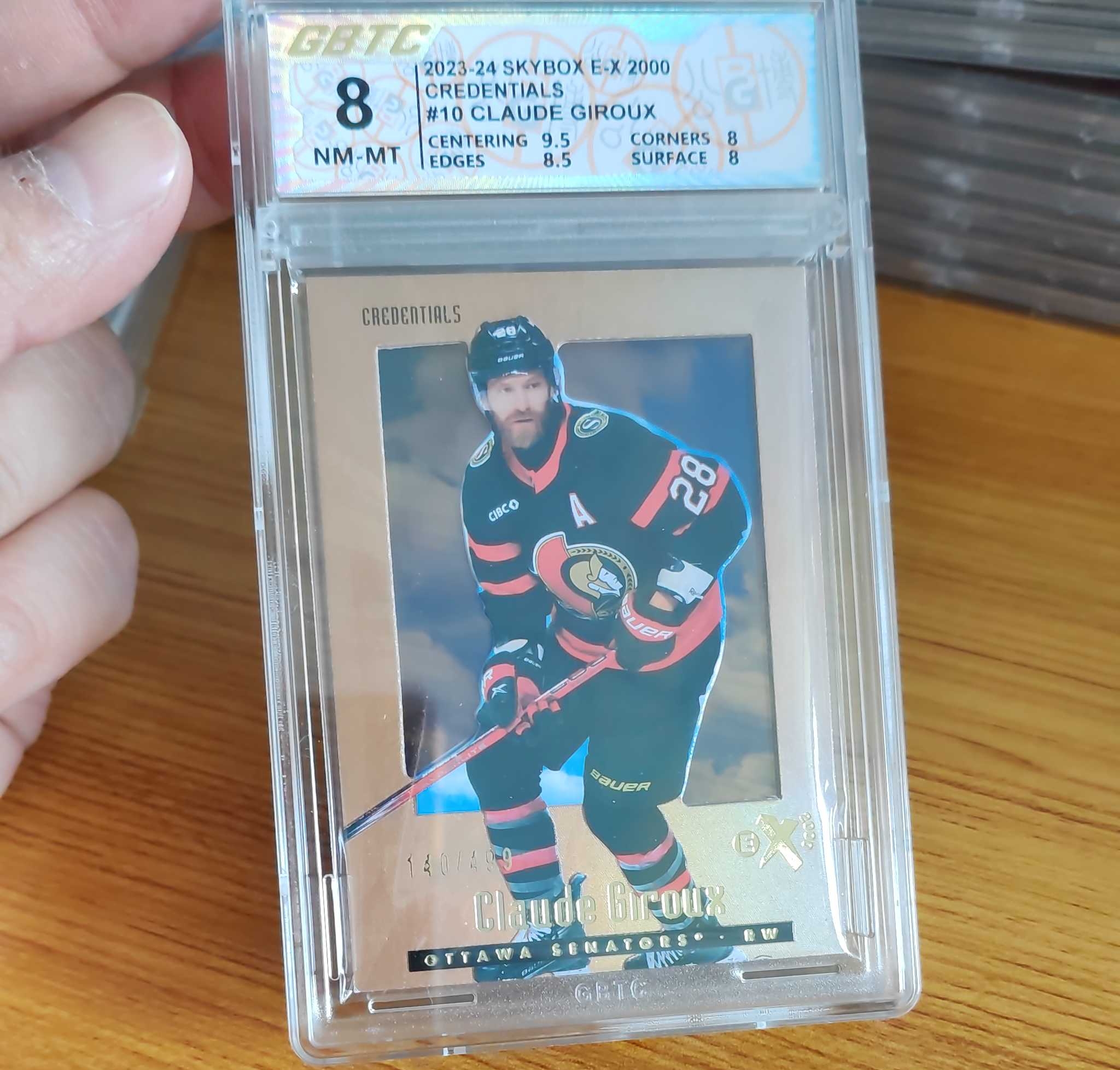 2023-24 SkyBox E-X 2000 Claude Giroux CREDENTIALS 超巨 499编暗橙折射 公博评级8分 经典老编号复刻 正反编前身 蓝天白云复杂工艺已属美品