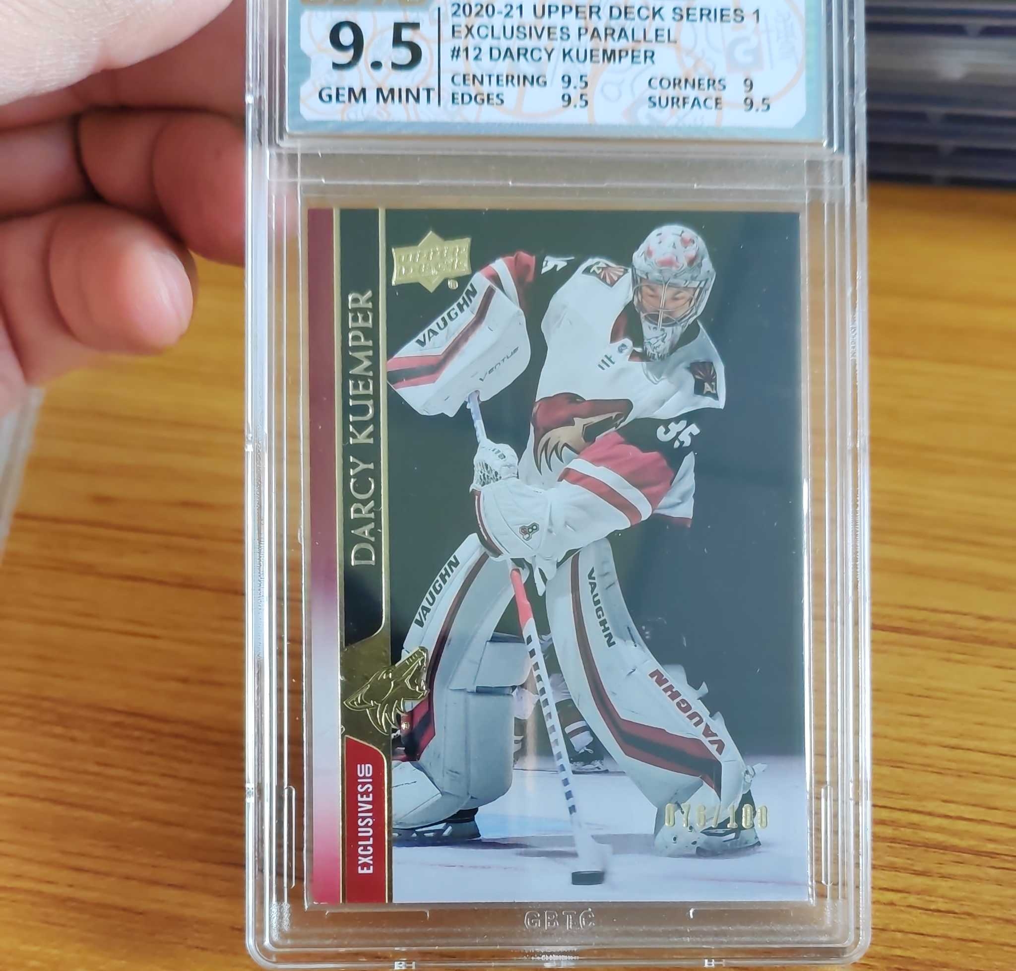 2020-21 Upper Deck SERIES 1 DARCY KUEMPER EXCLUSIVES 100编 金平行 公博9.5分 完美品相 收藏价值佳品 实卡极美