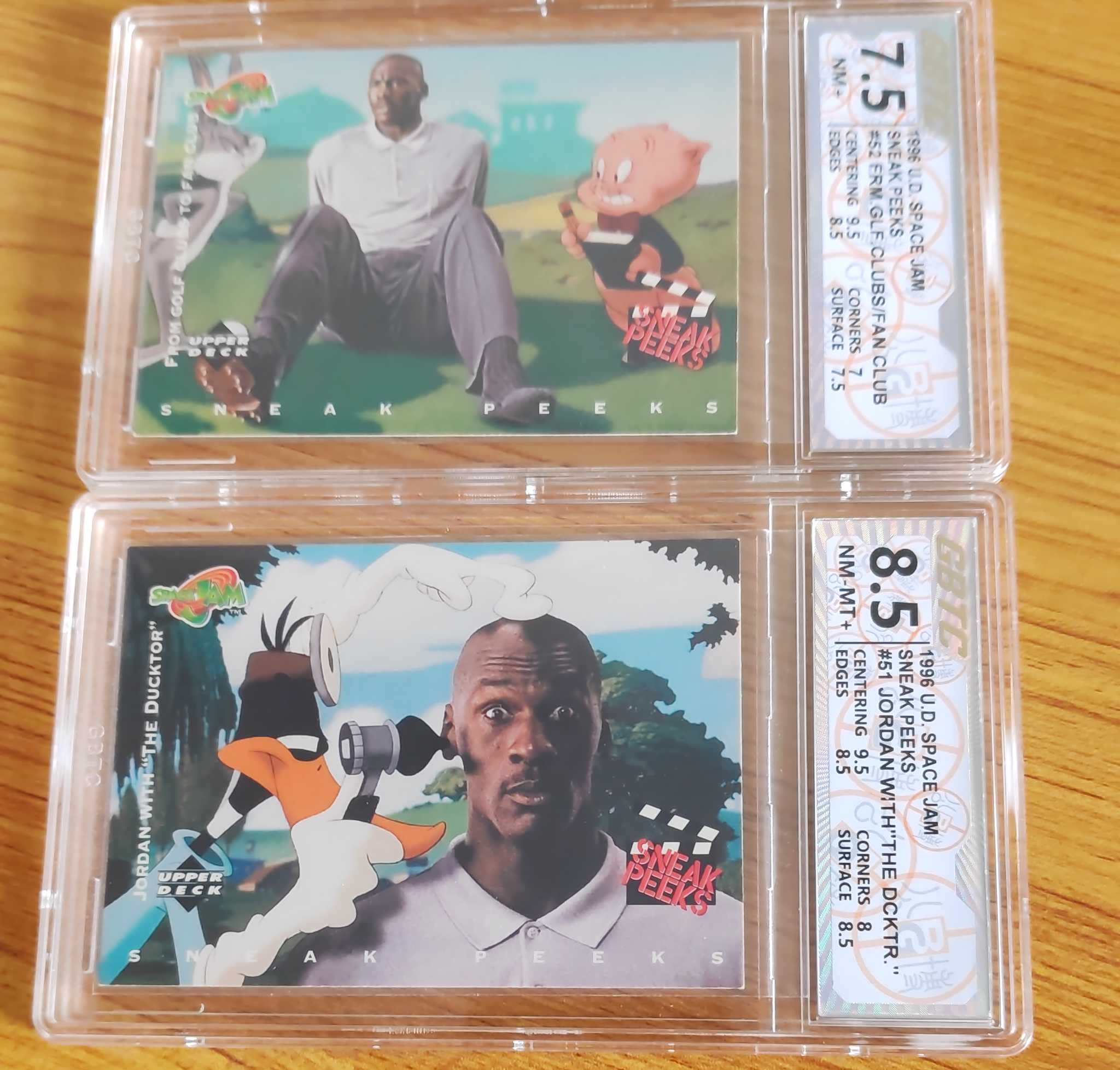 1996 Upper Deck Space Jam Michael Jordan 迈克尔乔丹 空中大灌篮 SNEAK PEEKS 打包两张 公博8.5分 7.5分 老卡已属美品 收藏投资佳品 实卡极美
