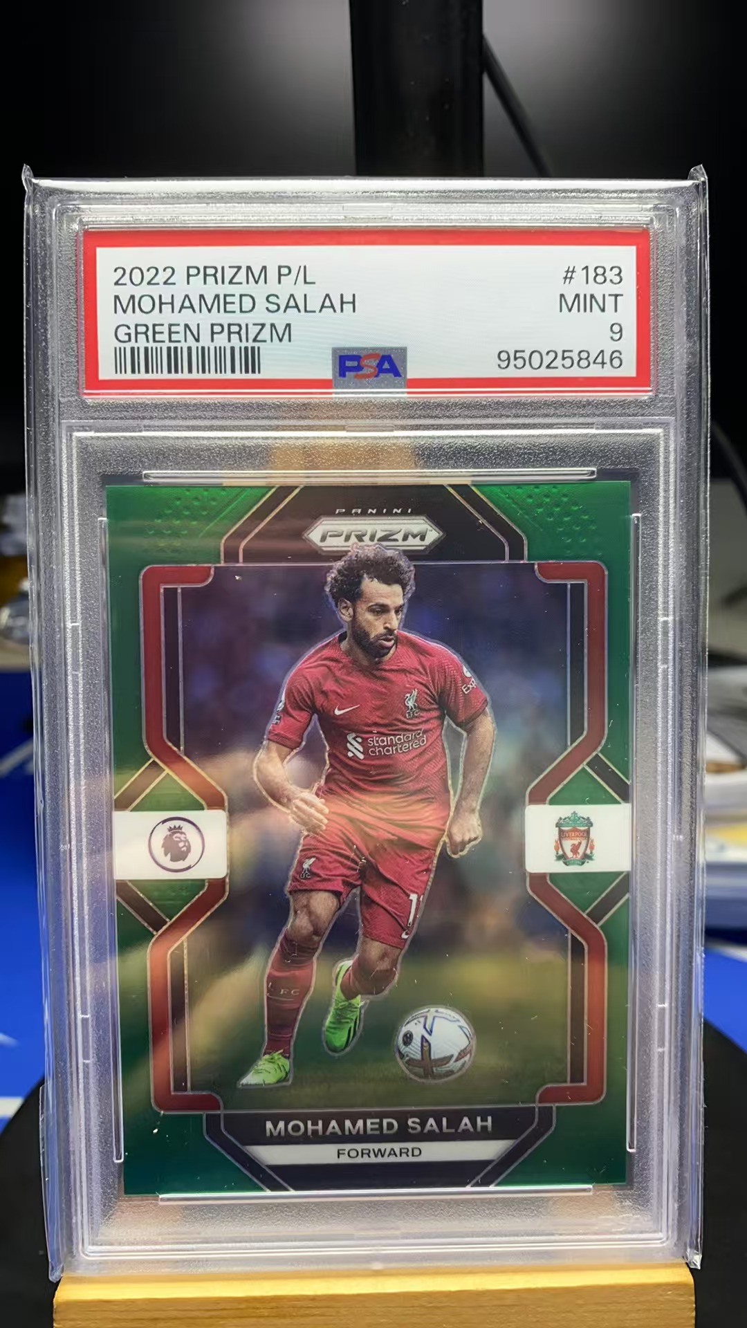 2022-23 Panini Prizm Mohamed Salah 【草莓球星卡】英超PRIZM 利物浦 萨拉赫 绿折 4/5 PSA评9分 K2294