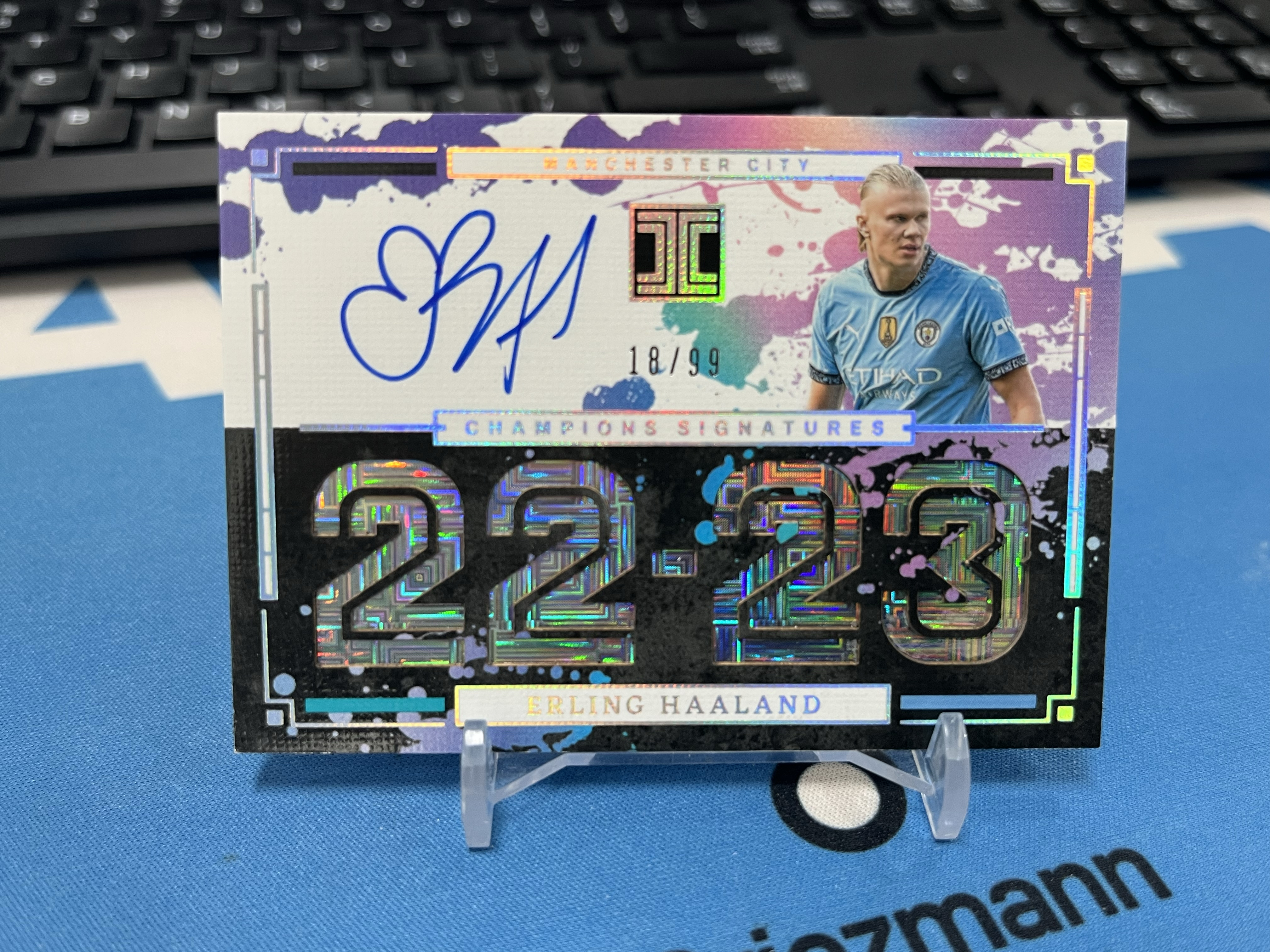 2024-25 Panini Impeccable Erling Haaland 小真金末年 曼城 哈兰德 冠军数据 卡签 单一平行 18/99编 2223三冠王 各种刷新纪录 卡淘首张 卡品如图