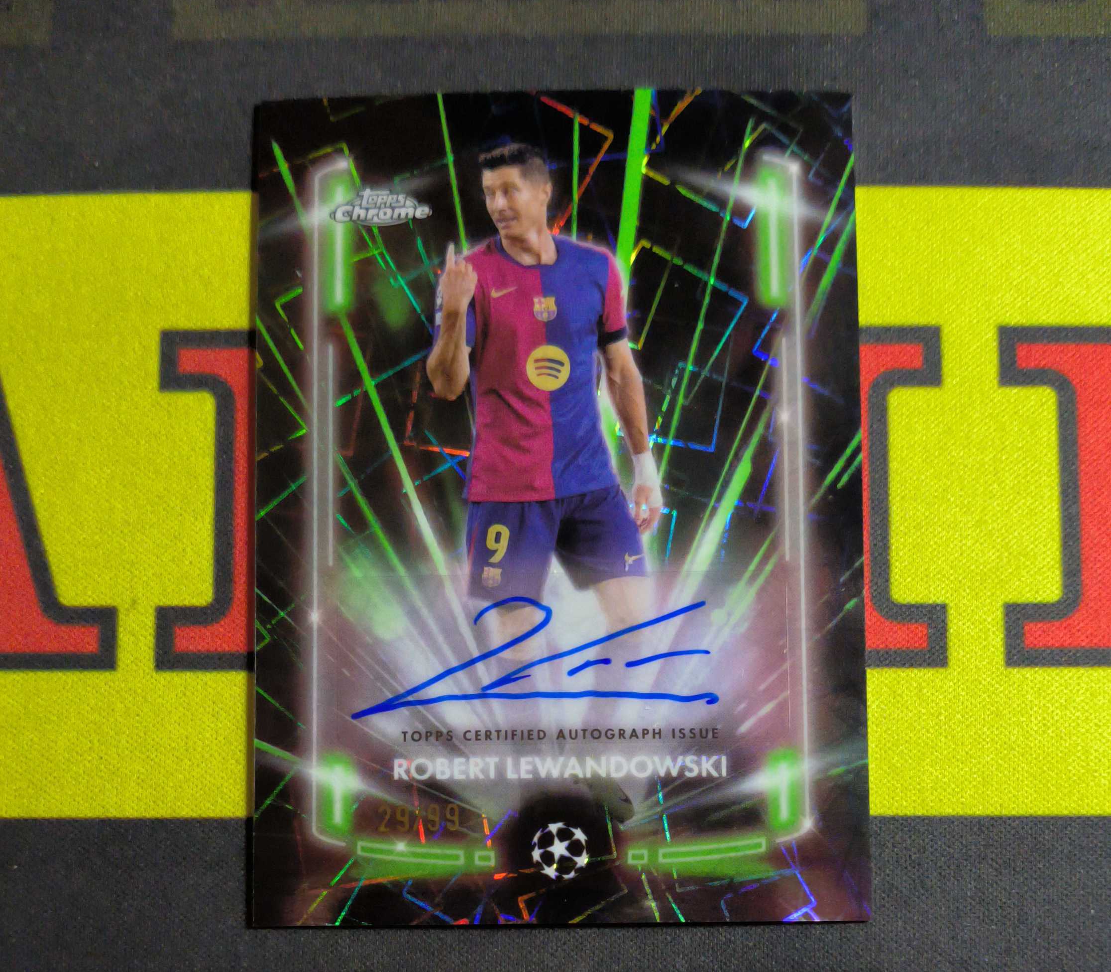 2025 Topps Chrome Robert Lewandowski 欧战Topps 巴萨 巴塞罗那 莱万多夫斯基 绿黑激光折签字 贴签 29/99编 细节如图(Kevin wu)