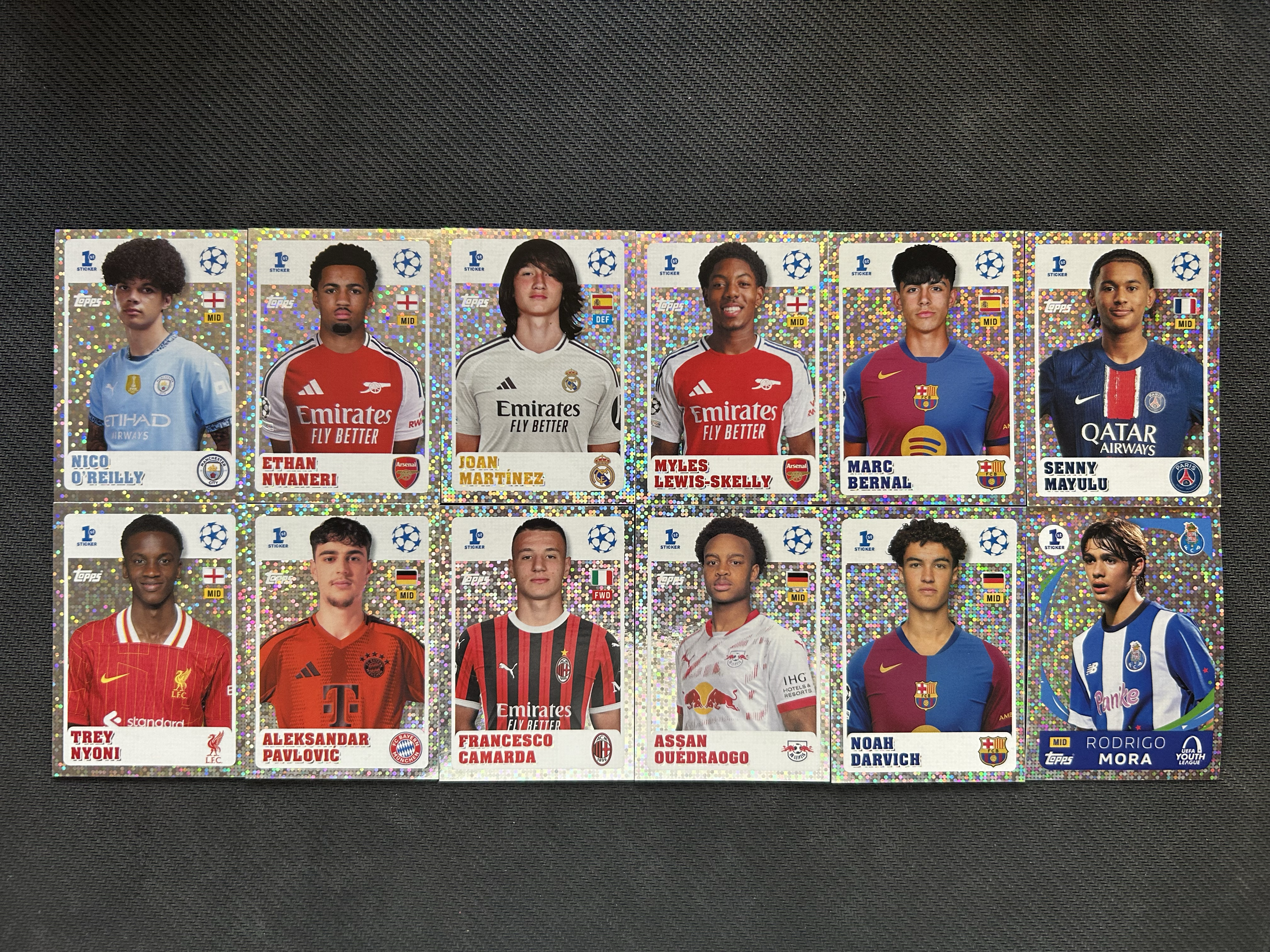 2024-25 Topps Official Sticker Collection Nwaneri 欧冠贴纸 恩瓦内里 斯凯利等 新秀 闪贴 阿森纳 皇家马德里 大巴黎 巴萨 专收凑套必备 卡品如图