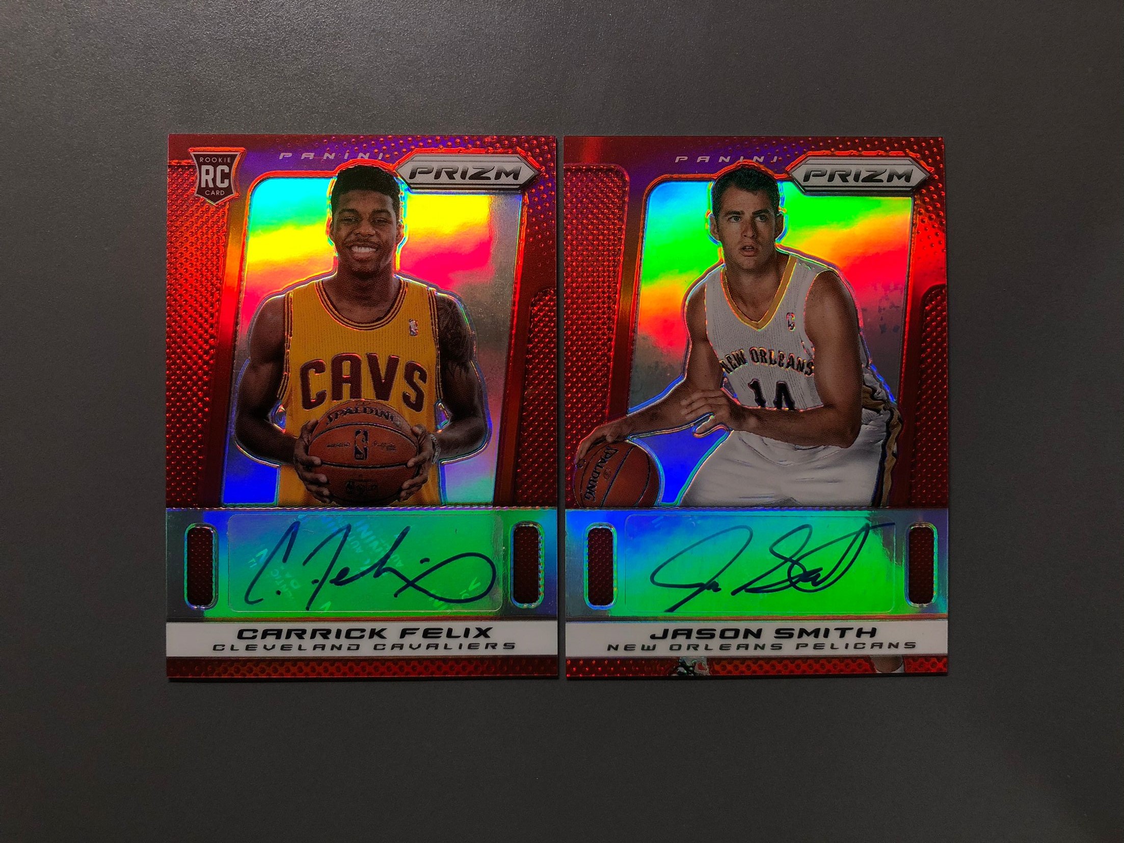 2013-14 Panini Prizm Carrick Felix RC 卡里克·菲力克斯 新秀 RC 新秀签 杰森·史密斯 签字 贴签 红折 99编 2张lot 实卡好看 卡品如图 可累计 GMD