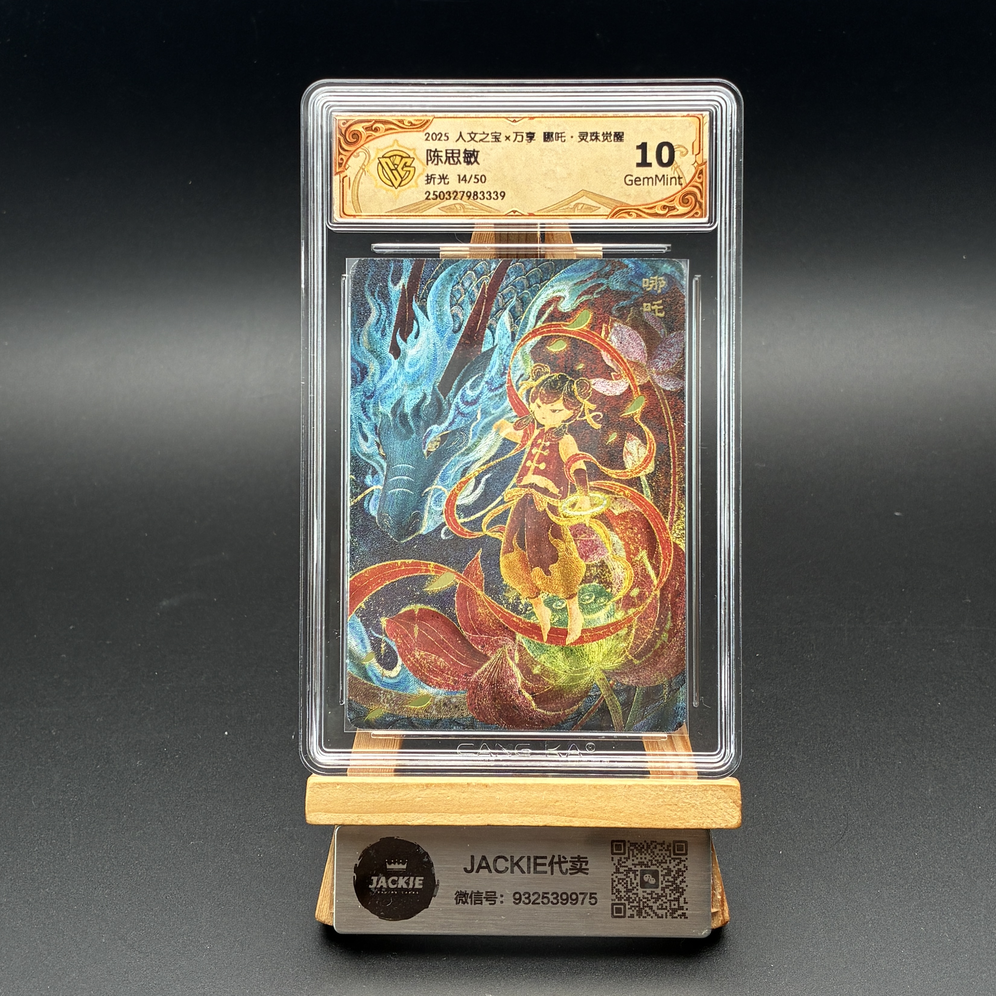 【JACKIE】 2025 人文之宝 万享 哪吒 灵珠觉醒 画师陈思敏 折光 14/50 CCG10分 评级卡 #39(HTH)