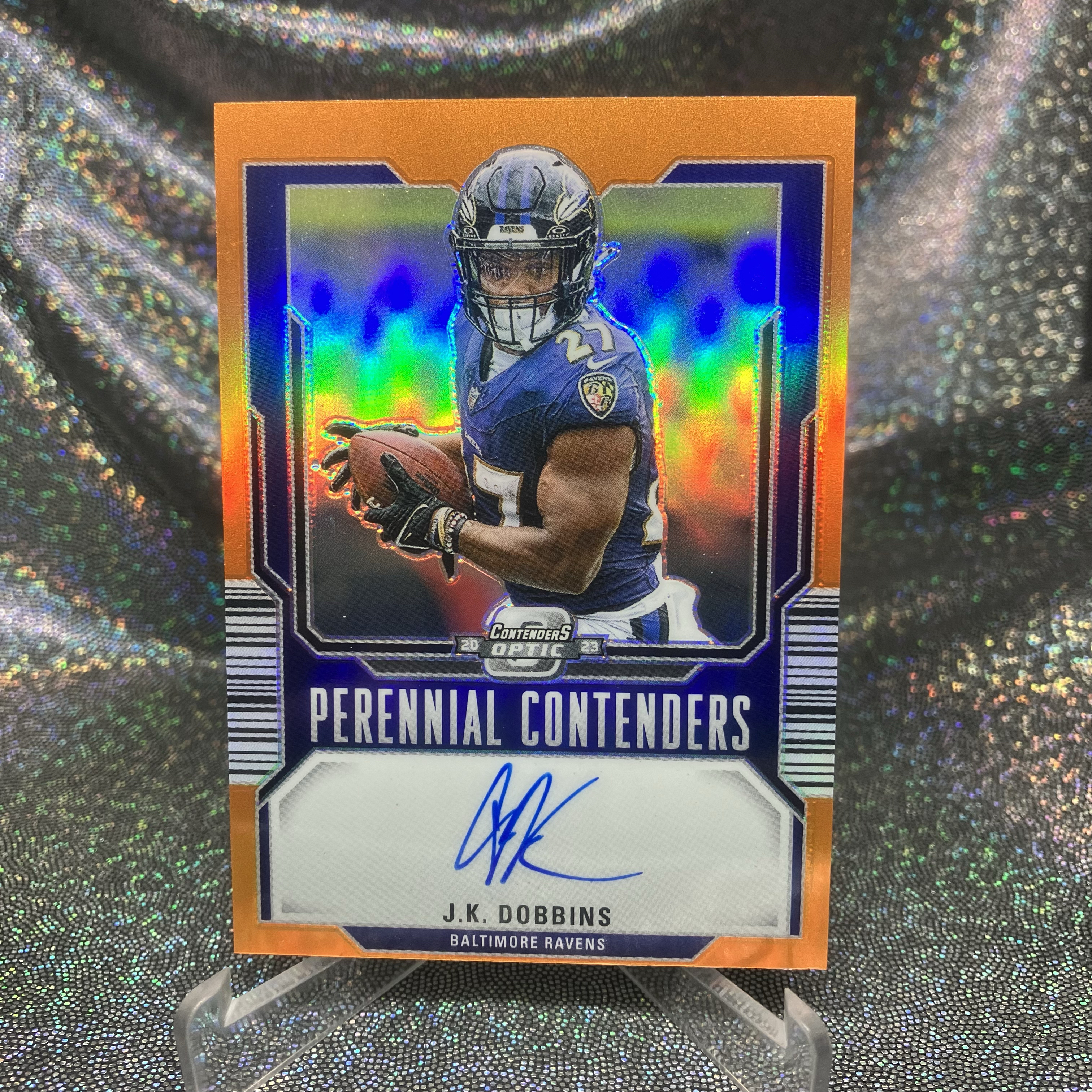 2023 Panini Contenders Optic J.K. Dobbins 橄榄球 球票 道宾斯 签字 50编 橙折 巴尔的摩乌鸦 NFL 卡签