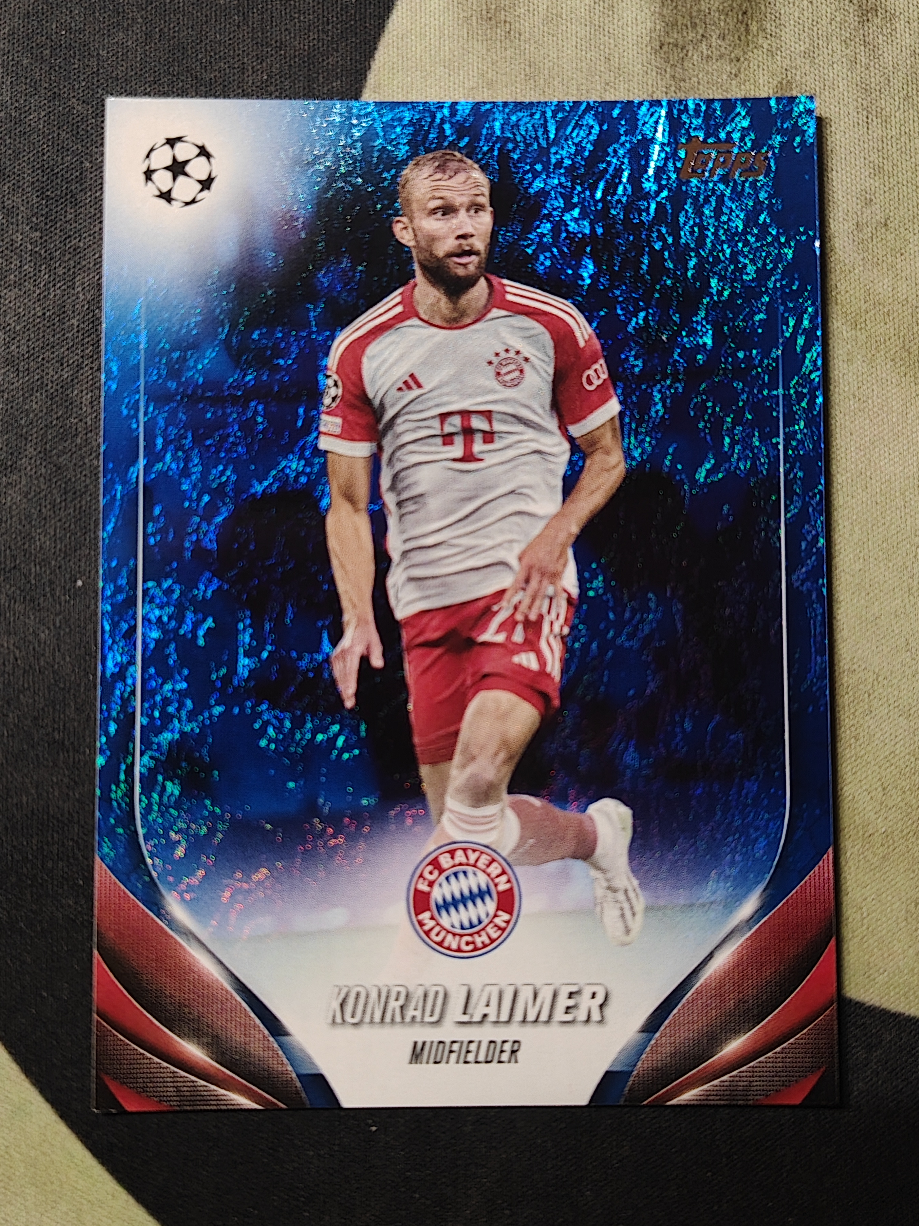 2024 Topps Chrome Konrad Laimer 欧冠 碧玉 拜仁慕尼黑 莱莫 15/175编 蓝玉折 卡品如图 实卡精美 收藏必备