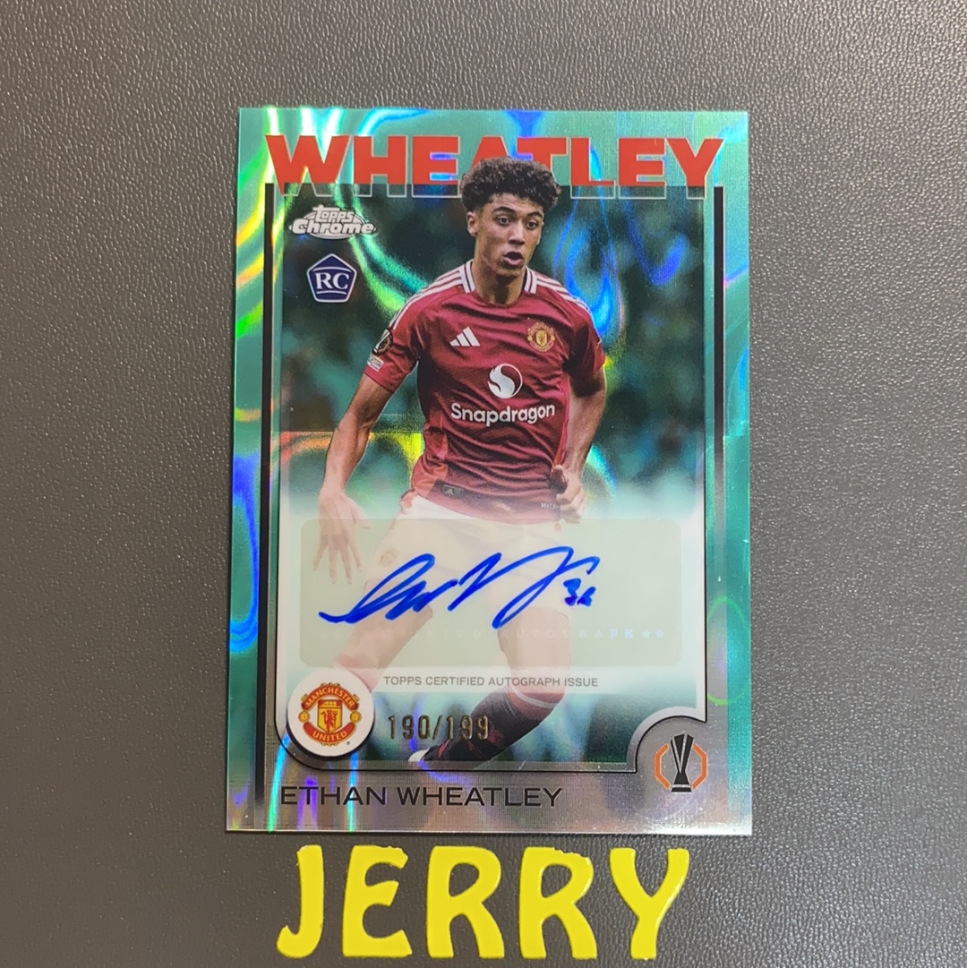 2024-25 Topps Chrome Ethan Wheatley RC 欧冠 tc 曼联 伊森 惠特利 新秀 190/199编 签字 青折 水蓝折 熔岩折 签名 卡品如图【贰拾柒】