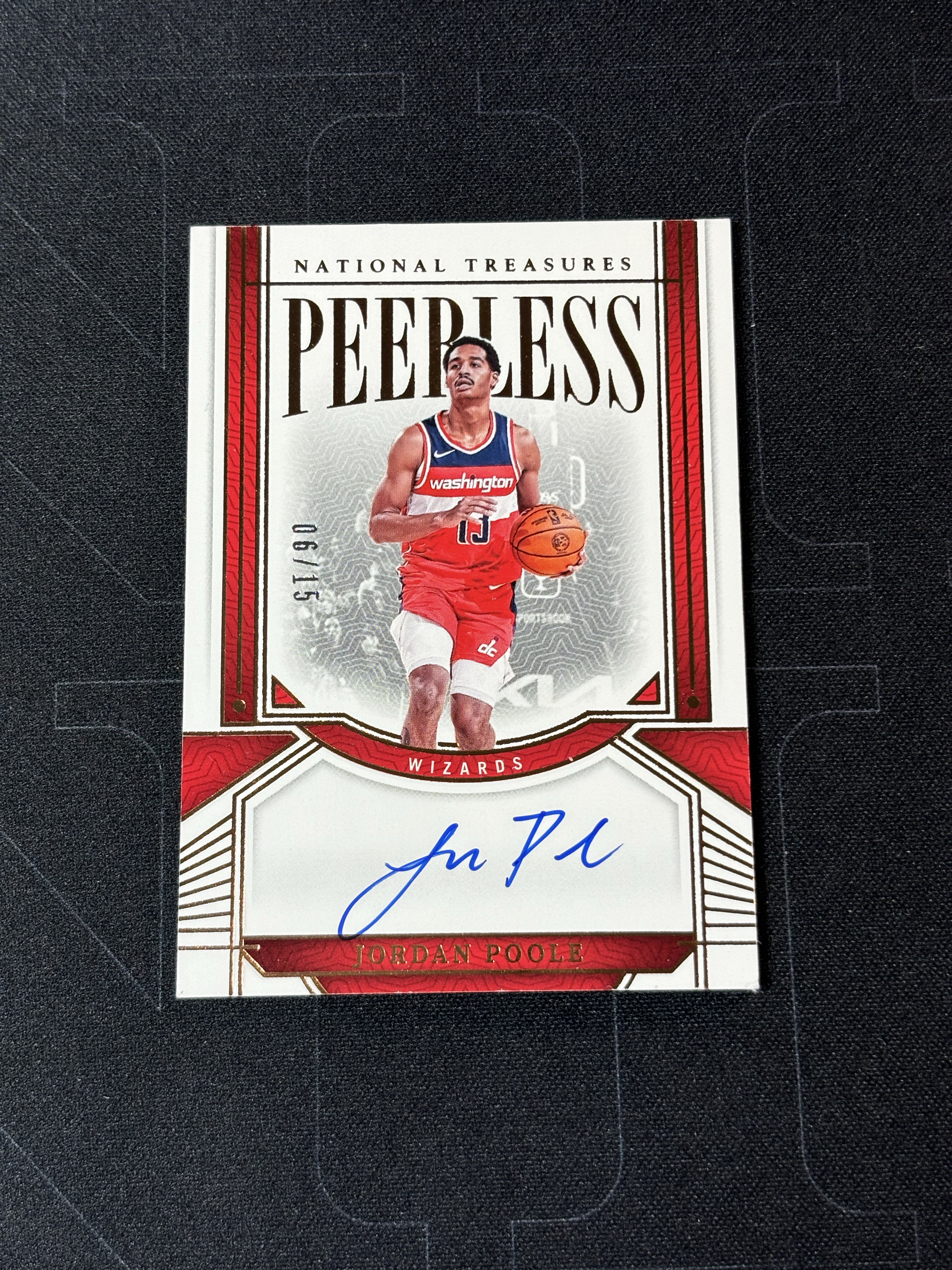 2023-24 Panini National Treasures Jordan Poole 【香山代卖】奇才 乔丹 普尔 签字 06/15编 铜平行 奇才当家球星 国宝 卡签 低编 卡角瑕疵如图