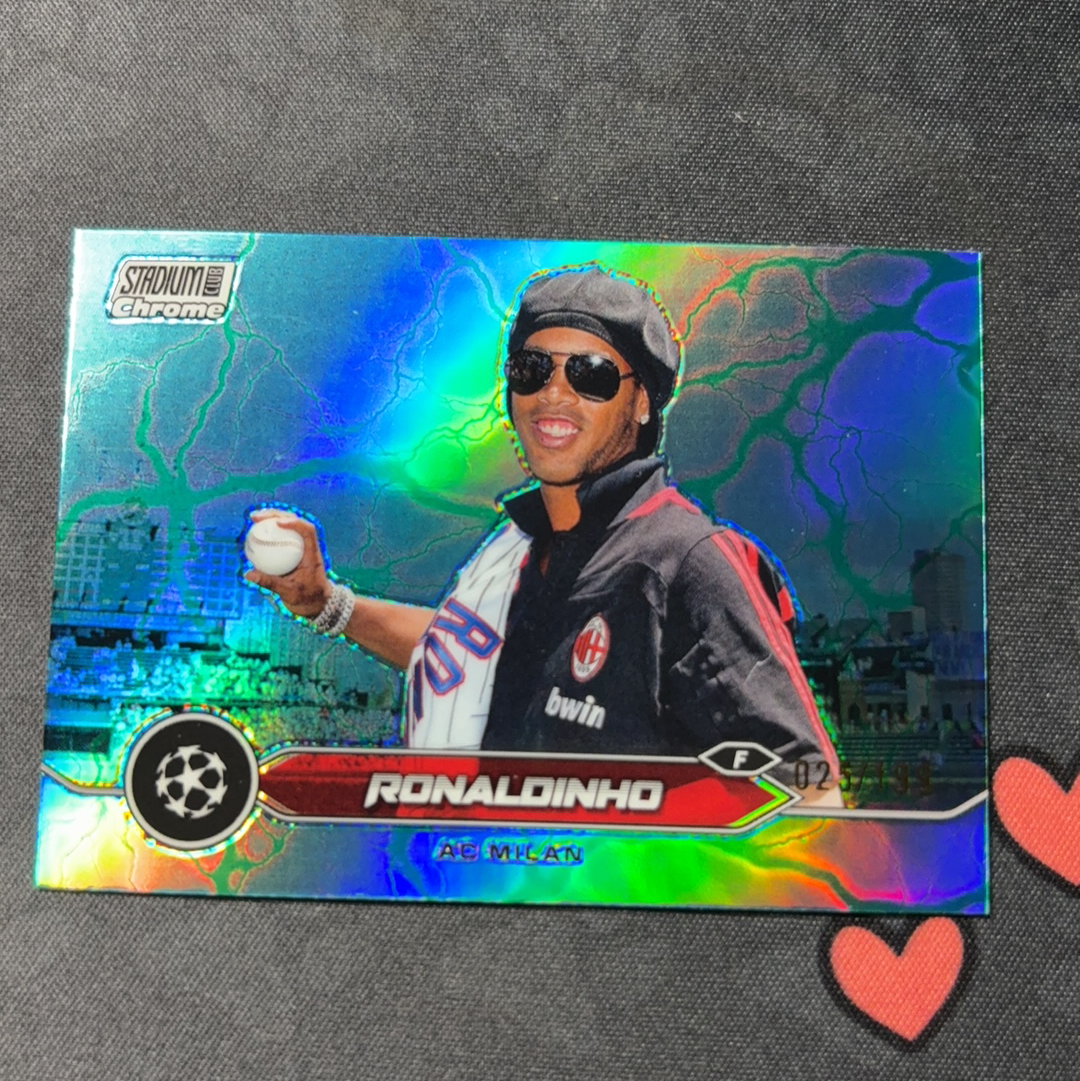 【风速狗】2024 Topps Chrome Stadium 竞技场 AC米兰 巴萨 巴塞罗那 Ronaldinho 罗纳尔迪尼奥 小罗 25/199编 绿闪电 卡品如图 顺丰寄付 火神