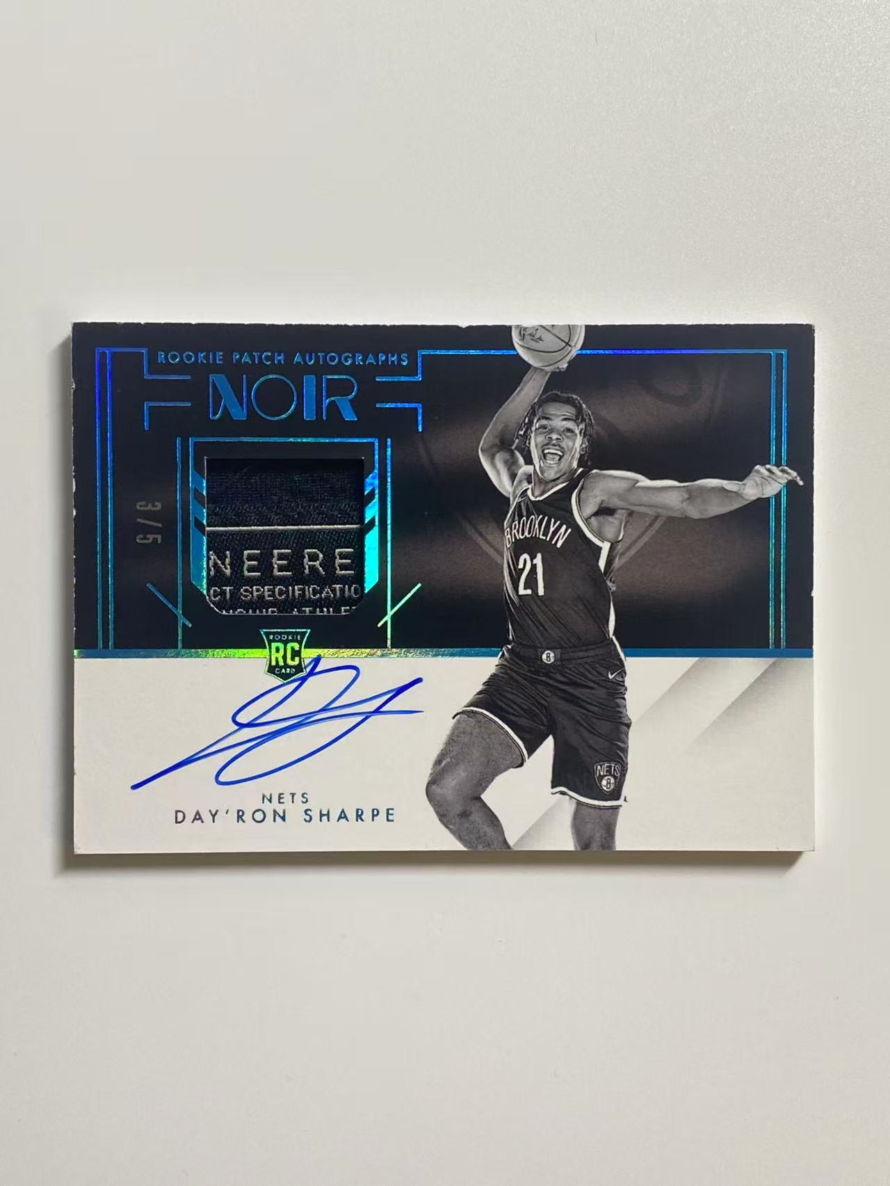2021-22 Panini Noir DayRon Sharpe RC 【网记卡屋】戴隆 戴龙 戴罗恩 夏普 新秀RC 篮网 noir 3/5编 tag签 水洗标 湖水蓝 卡签 卡面瑕疵如图