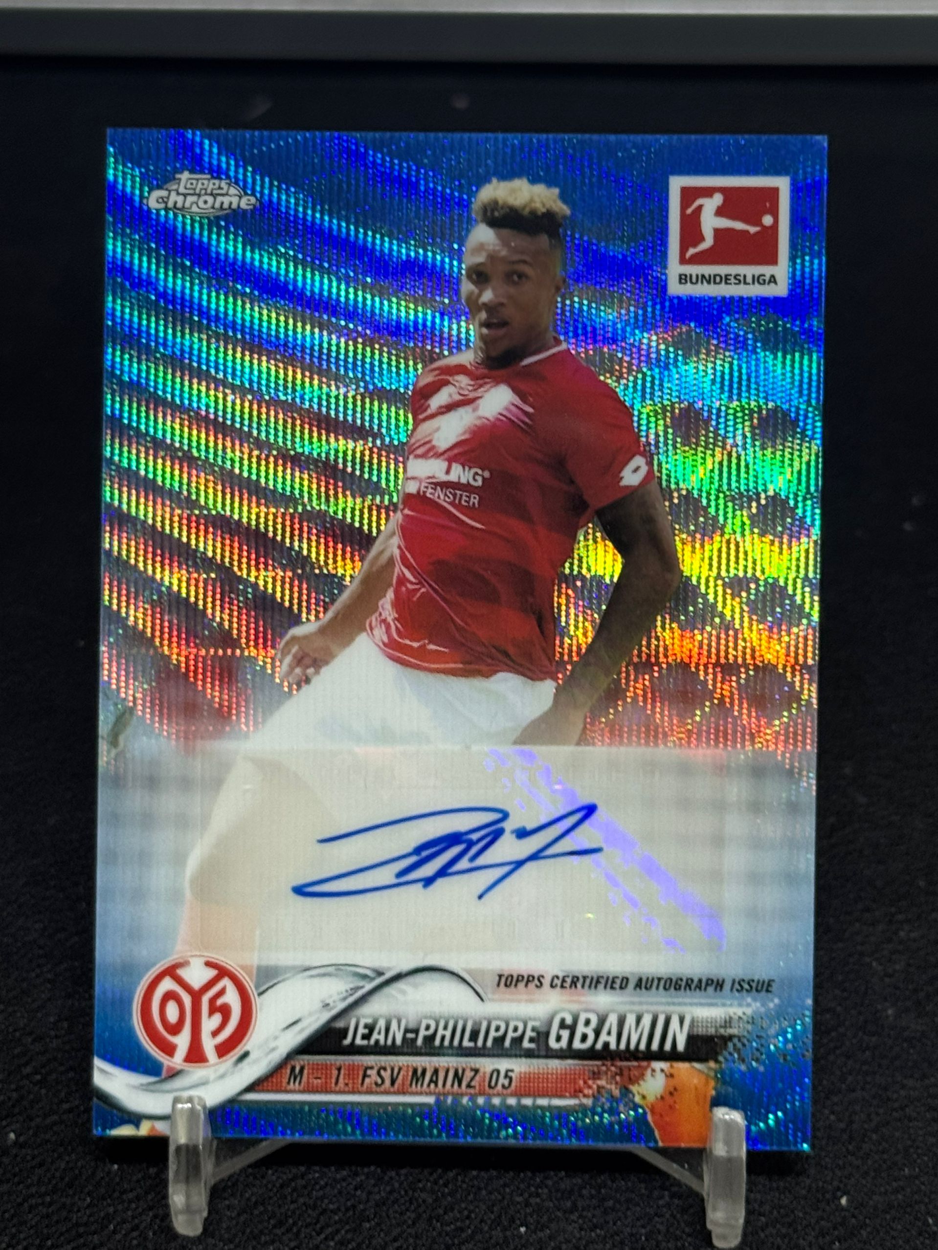 【浩行拍卖 截标预付82%】2019 topps chrome jean philippe gbamin 德甲 美因茨 菲利普 格巴曼 蓝波纹折 折射 签字 5/75编 专收必备 瑕疵看图「集合」0605B02裊