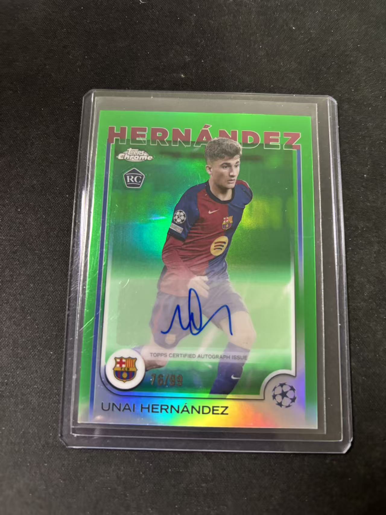 2024-25 Topps Chrome 欧战TC Unai Hernandez RC 巴塞罗那 巴萨 新秀 乌奈 埃尔南德斯 76/99编 绿折 签字 折射 base tarry