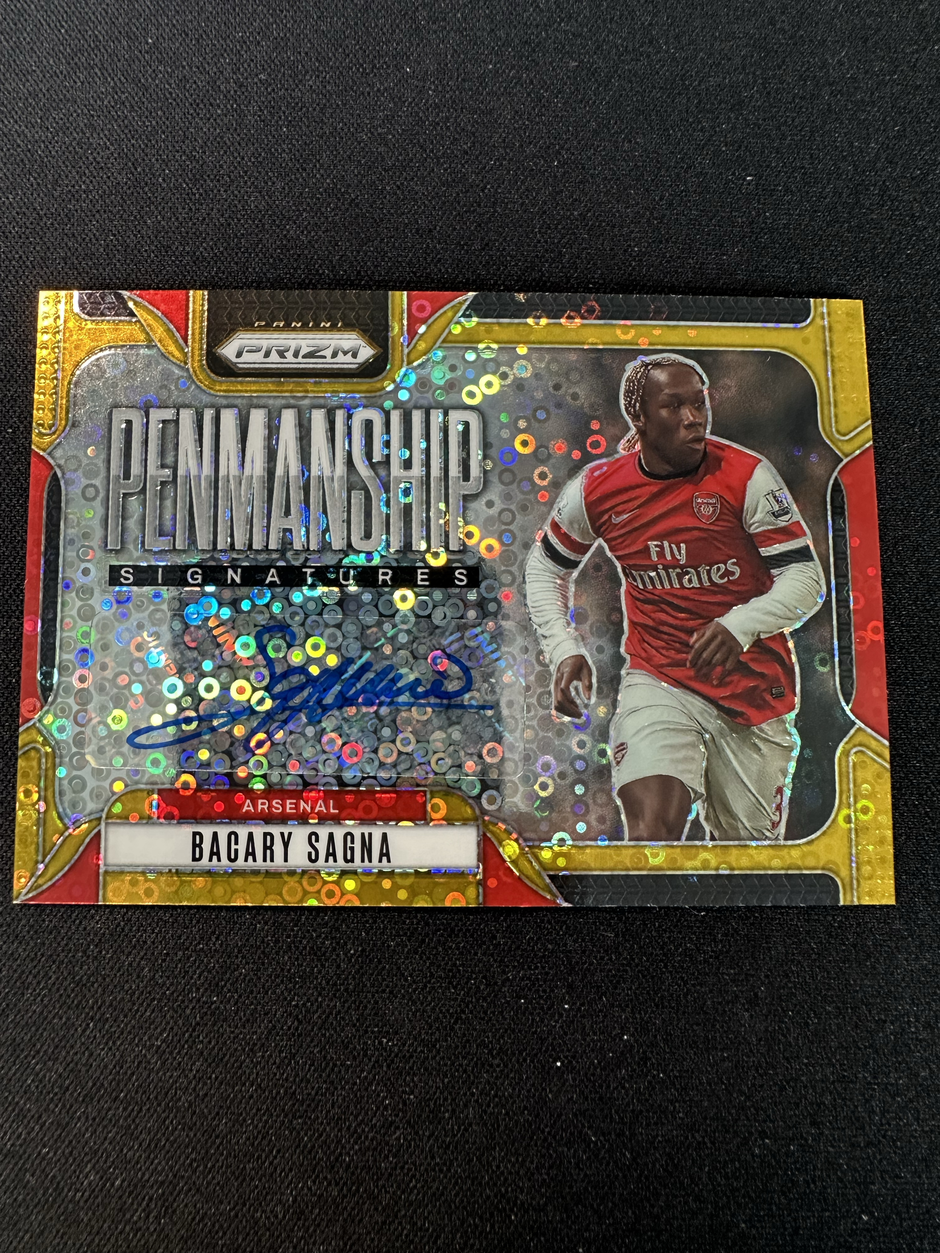 2024-25 Panini Prizm Bacary Sagna 末年 英超PZ 阿森纳 巴卡里 萨尼亚 签字 金泡泡折 01/10编 首编 书法签 名宿 卡品如图 w5