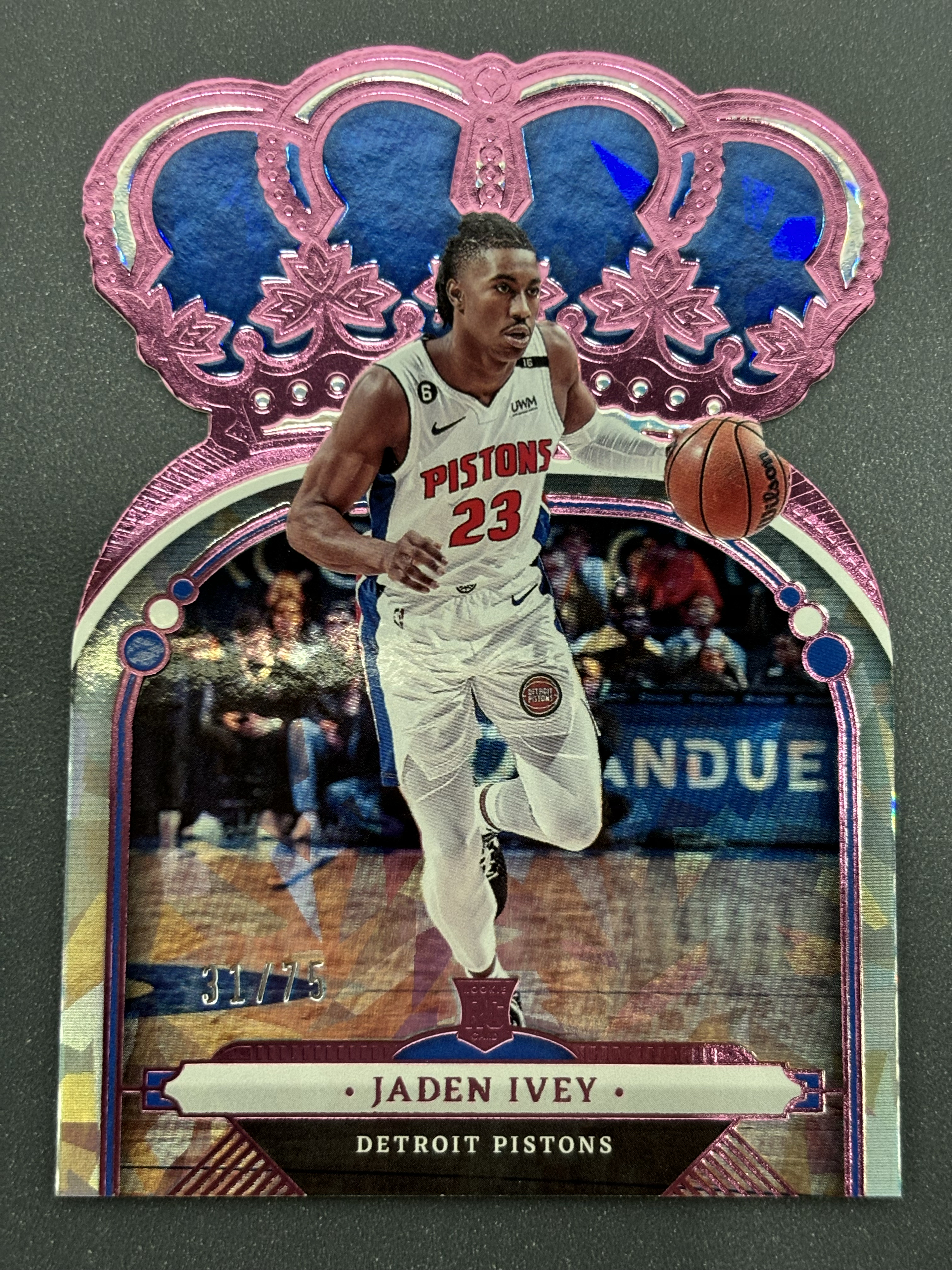 2022-23 Panini Crown Royale Jaden Ivey RC 皇冠 活塞 杰登艾维 新秀 粉碎冰折 31/75编 墨迹如图 实卡精美 卡品如图(Hao)