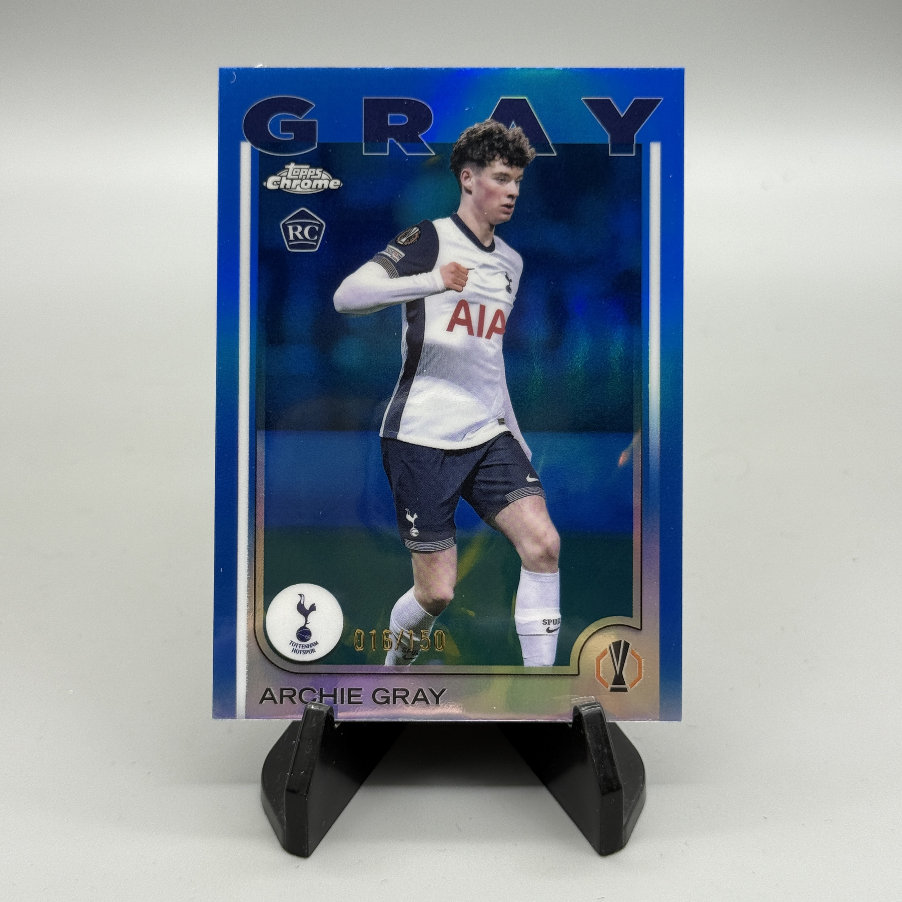 2024-25 Topps Chrome Archie Gray RC 欧冠欧战TC 阿奇 格雷 新秀 热刺 蓝折 016/150编 收藏必备 微瑕 卡品如图 白胖子 【UD拍卖】