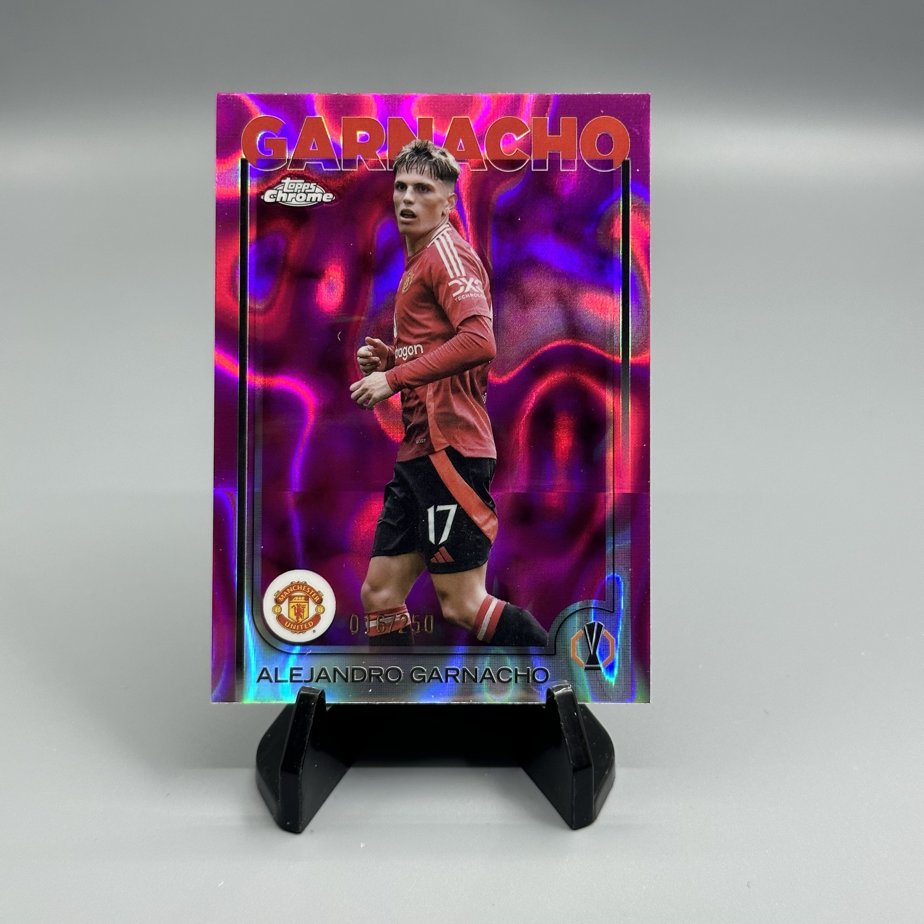 2024-25 Topps Chrome Alejandro Garnacho 欧冠欧战TC 加纳乔 曼联 016/250编 粉熔岩 折射 收藏必备 微瑕 卡品如图 FF 【UD拍卖】