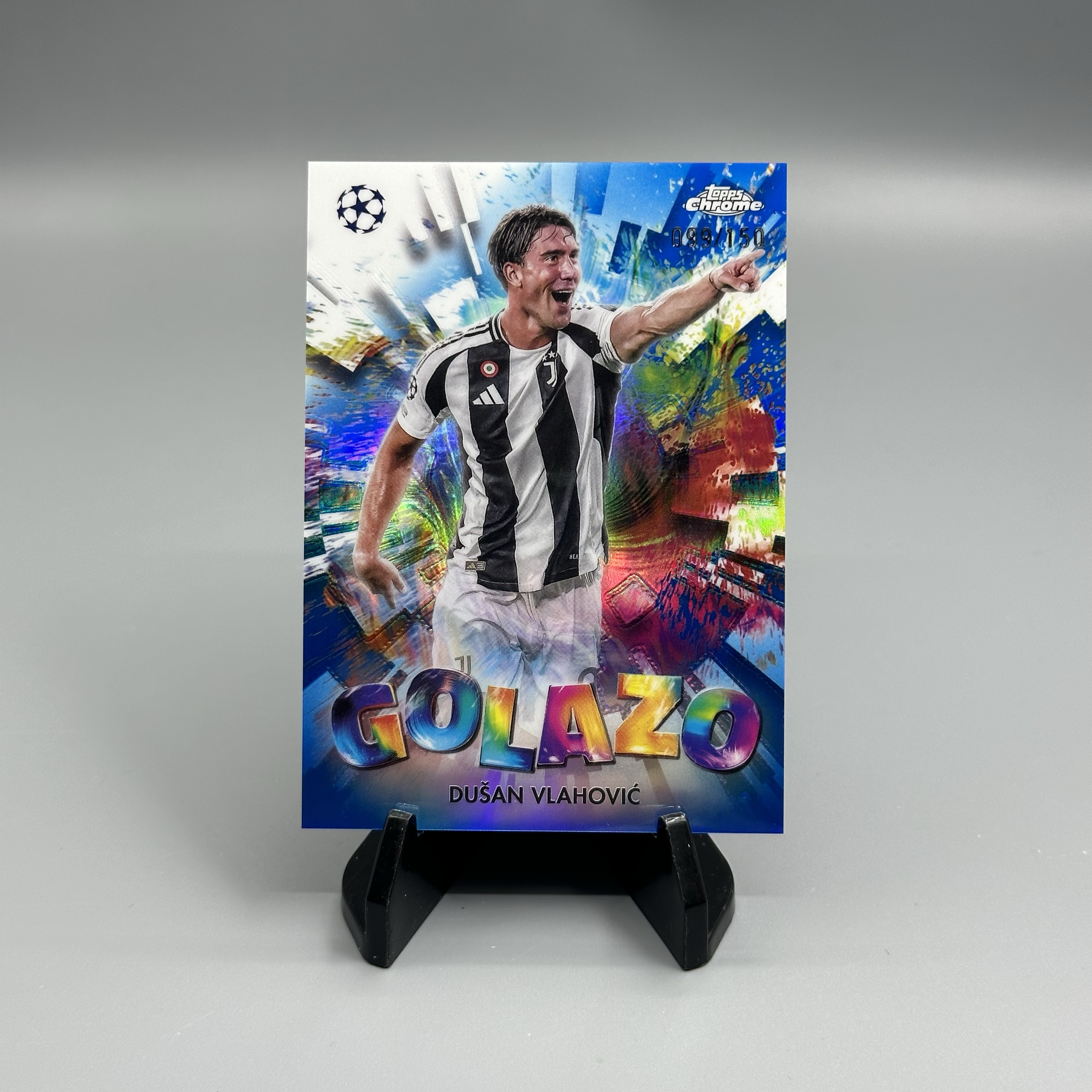 2024-25 Topps Chrome Dušan Vlahović 欧冠欧战TC 弗拉霍维奇 尤文图斯 Golazo特卡 099/150编 蓝折 收藏必备 微瑕 卡品如图 黑白 【UD拍卖】