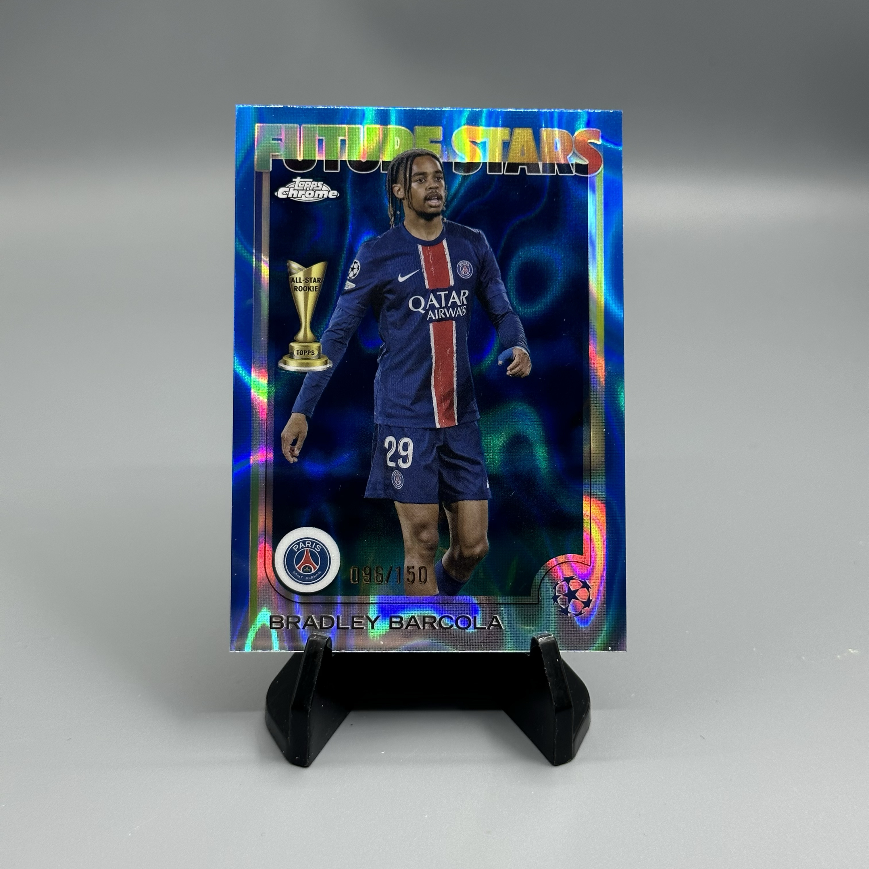 2024-25 Topps Chrome Bradley Barcola 欧冠欧战TC 巴尔科拉 巴黎圣日耳曼 096/150编 蓝熔岩 折射 收藏必备 微瑕 卡品如图 黑白 【UD拍卖】