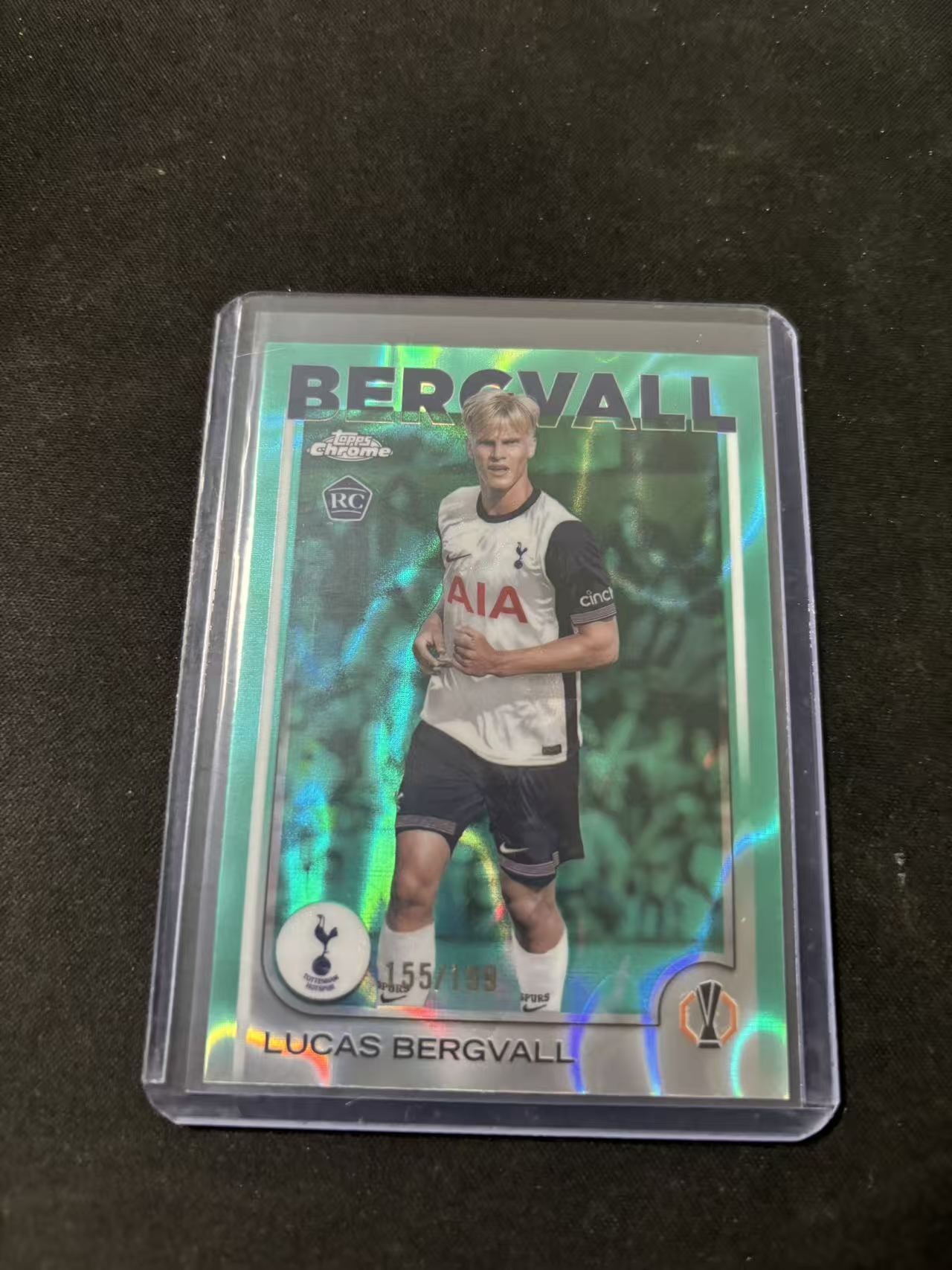 2024-25 Topps Chrome 欧战TC Lucas Bergvall RC 热刺 潜力新秀 贝里瓦尔 155/199编 青熔岩折 折射 base 来财
