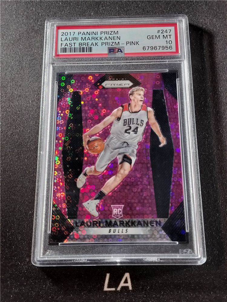 【LA拍卖】2017-18 Panini Prizm Lauri Markkanen 新秀RC 劳里 马尔卡宁 芬兰司机 骑士 爵士 公牛 粉泡泡折 快攻独占 base /50编 PSA10分 完美卡品 瑕疵如图 A56A