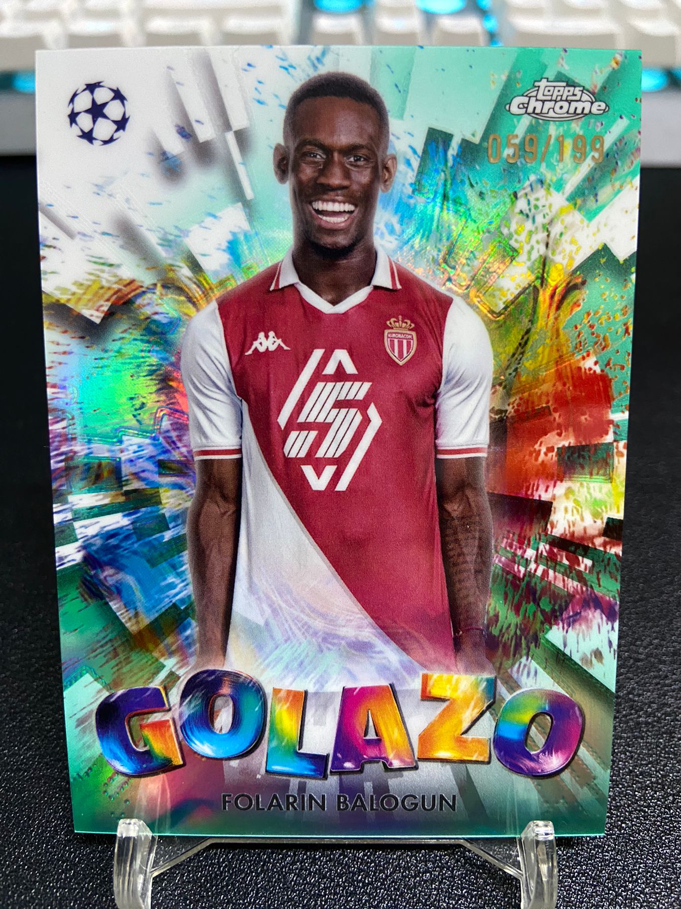 【浩行拍卖 截标预付82%】2025 topps chrome Folarin Balogun 欧冠 摩纳哥 福拉林 巴洛贡 GOLAZO 特卡 青折 折射 59/199编 专收必备 瑕疵看图「白枳」0606D04恁