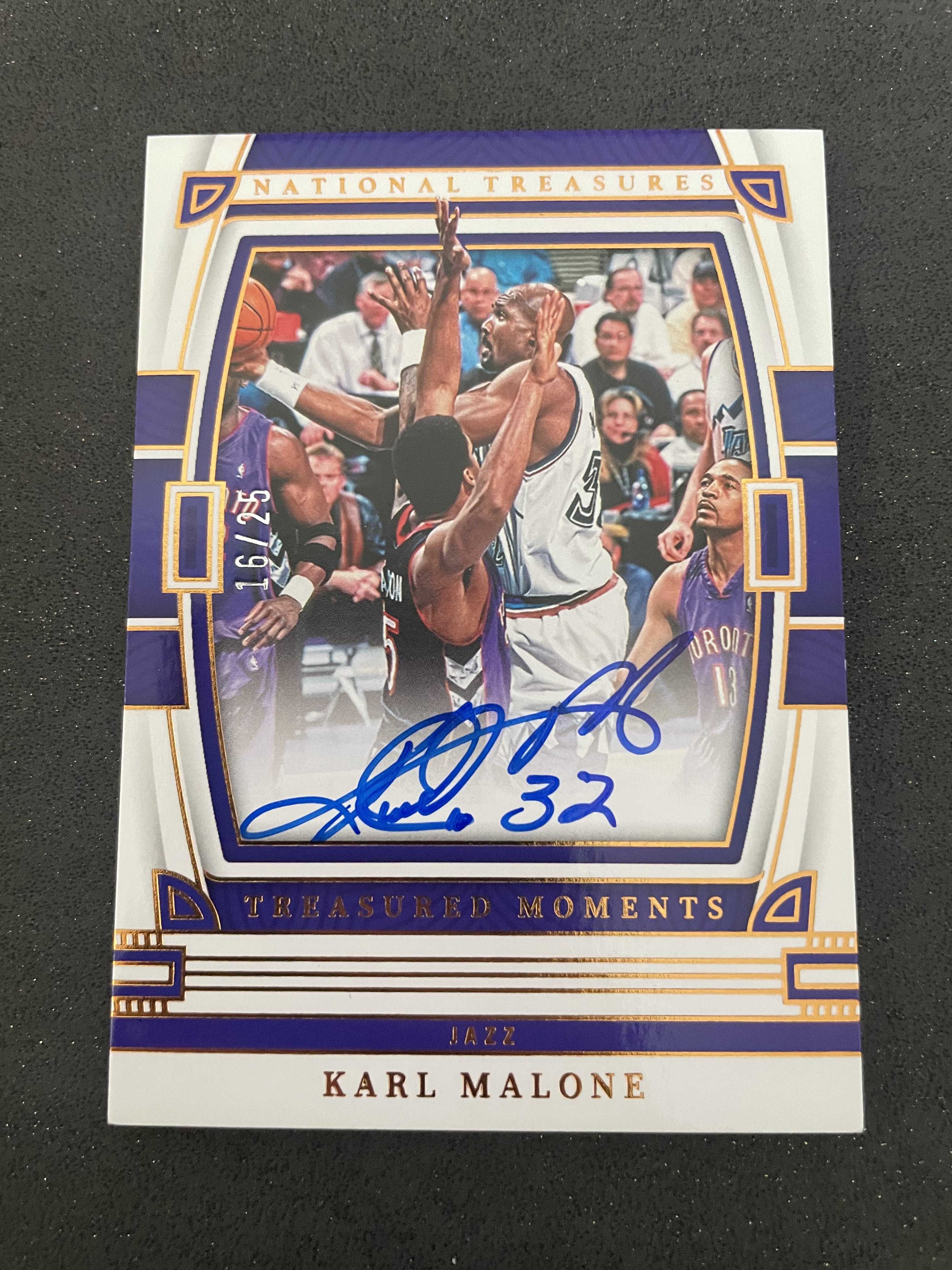 2022-23 Panini National Treasures Karl Malone 国宝 爵士队 卡尔马龙 时刻签 签字 卡签 铜平行 16/25编(背面划痕如图)