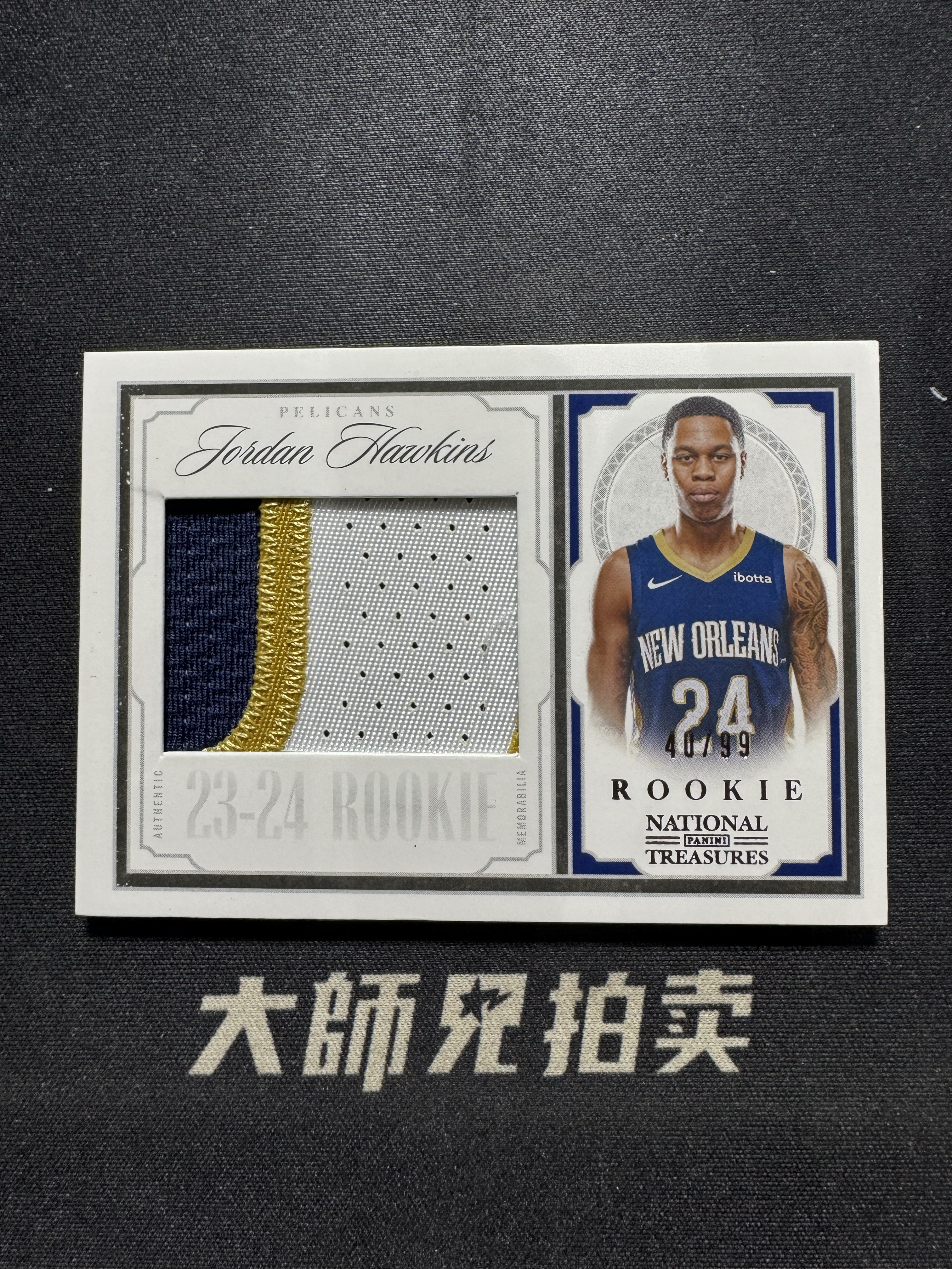 【大师兄拍卖】2024 Panini National Treasures Jordan Hawkins 国宝 鹈鹕 乔丹 霍金斯 新秀RC 99编 球衣物料切割 暴力patch 细节看图 -肥鲤-