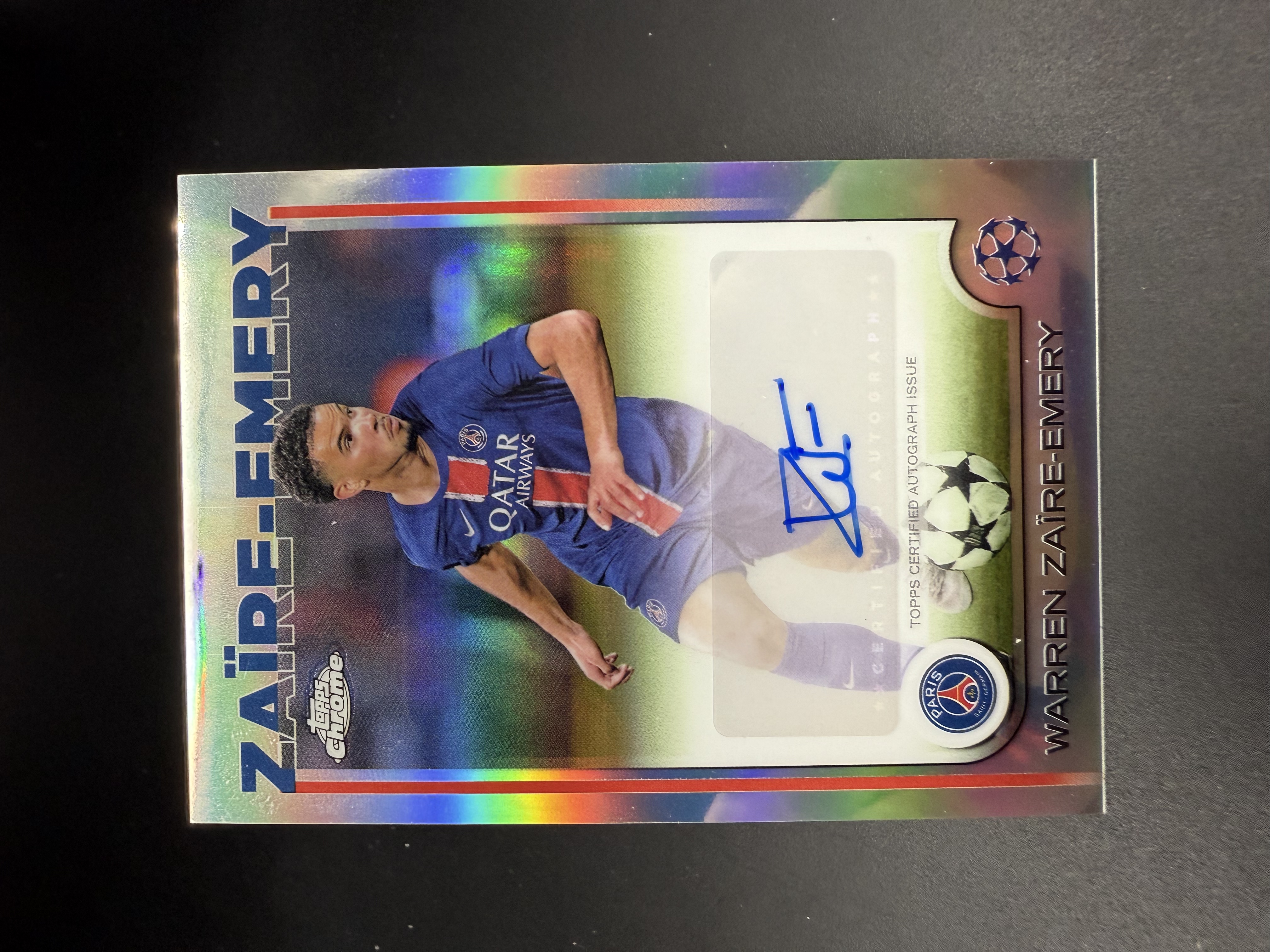 2025 Topps Chrome Warren Zaïre-Emery 【湖水蓝拍卖】埃梅里 巴黎圣日耳曼 欧战TC 欧冠 银折签 签字 卡品如图 summis