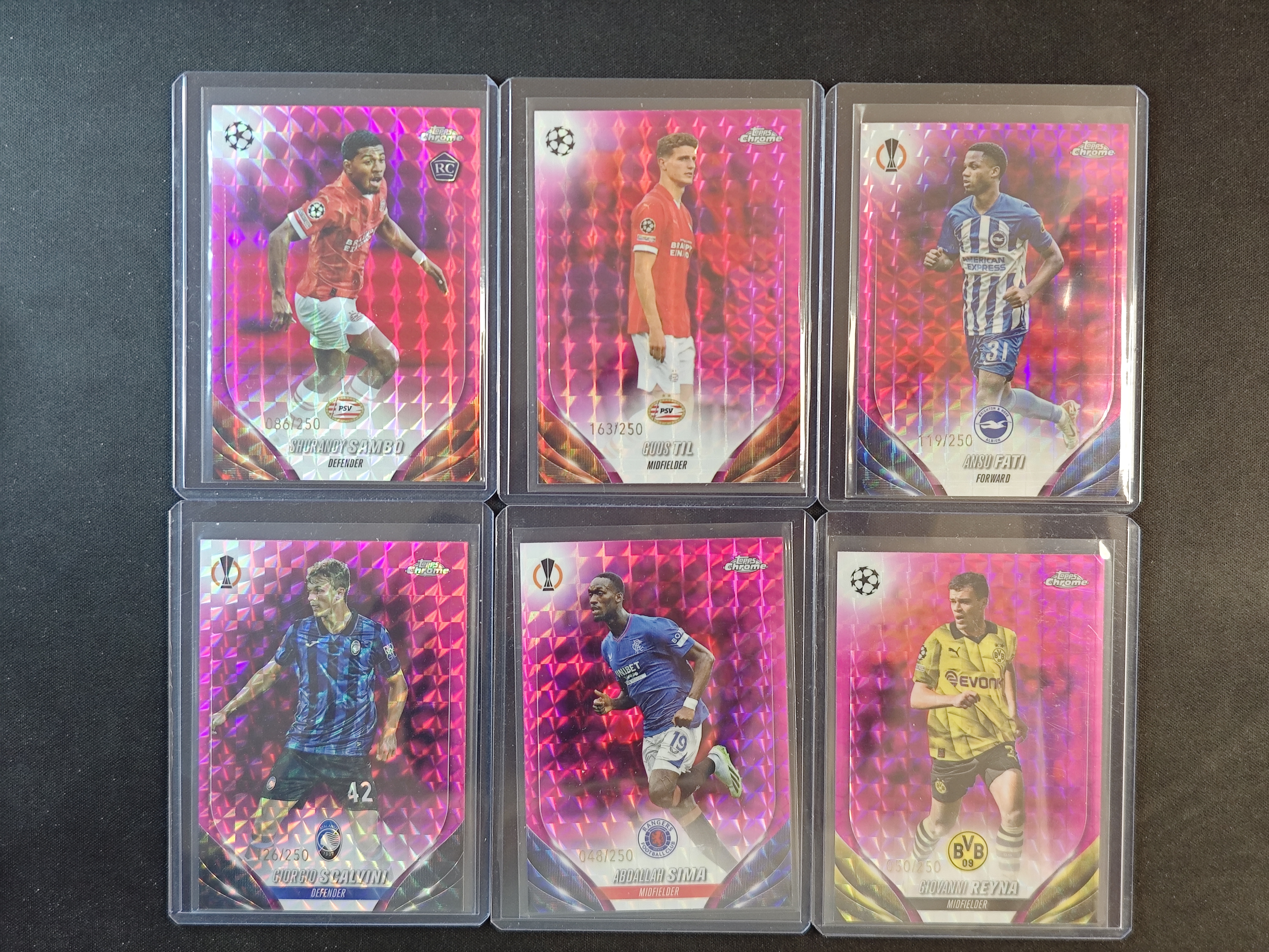 2023-24 Topps Chrome Giovanni Reyna 欧冠TC 雷纳 法蒂斯卡尔维尼等 250编 粉几何折 六张打包 折射 base 实卡精美 凑套必备 WG209