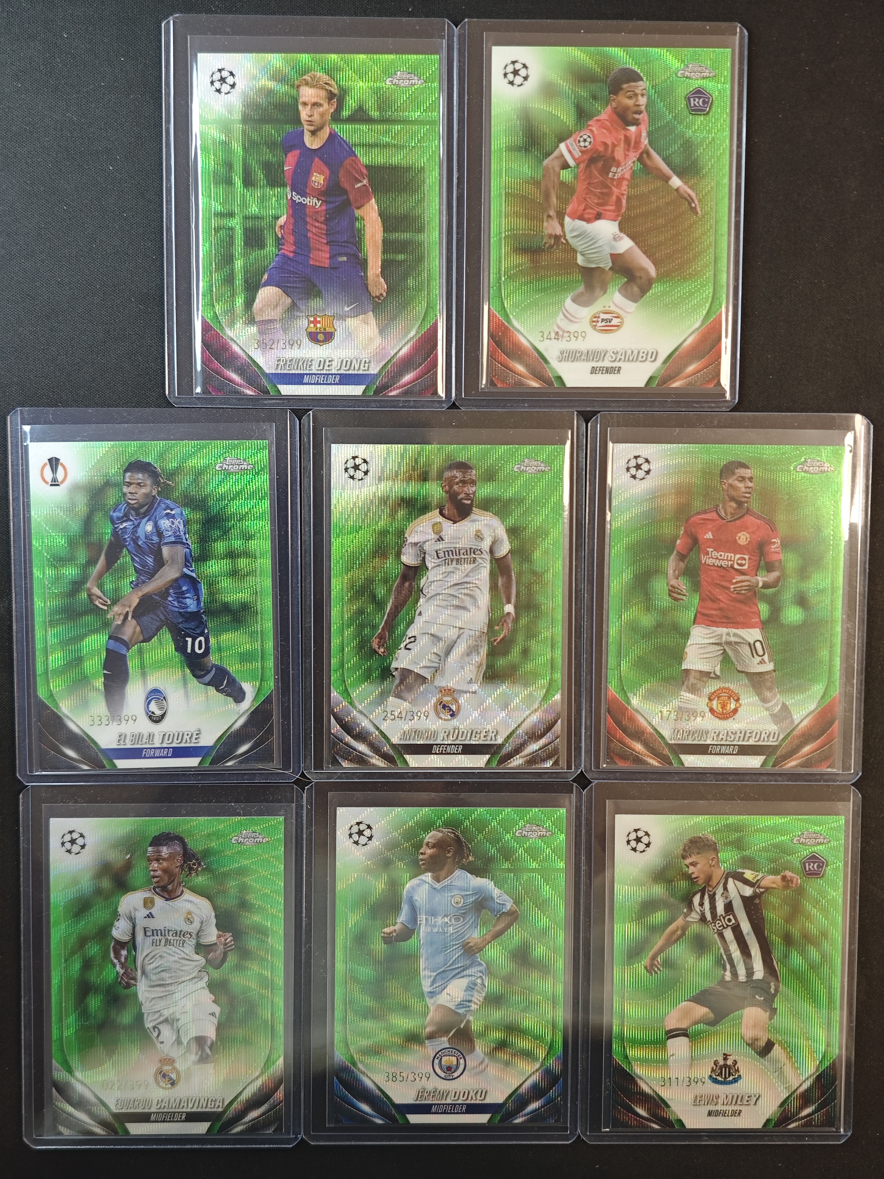 2023-24 Topps Chrome Frenkie de Jong 欧冠TC 德容 吕迪格 拉什福德等 399编 绿波纹折 折射 base 八张打包 实卡精美 凑套必备 WG209
