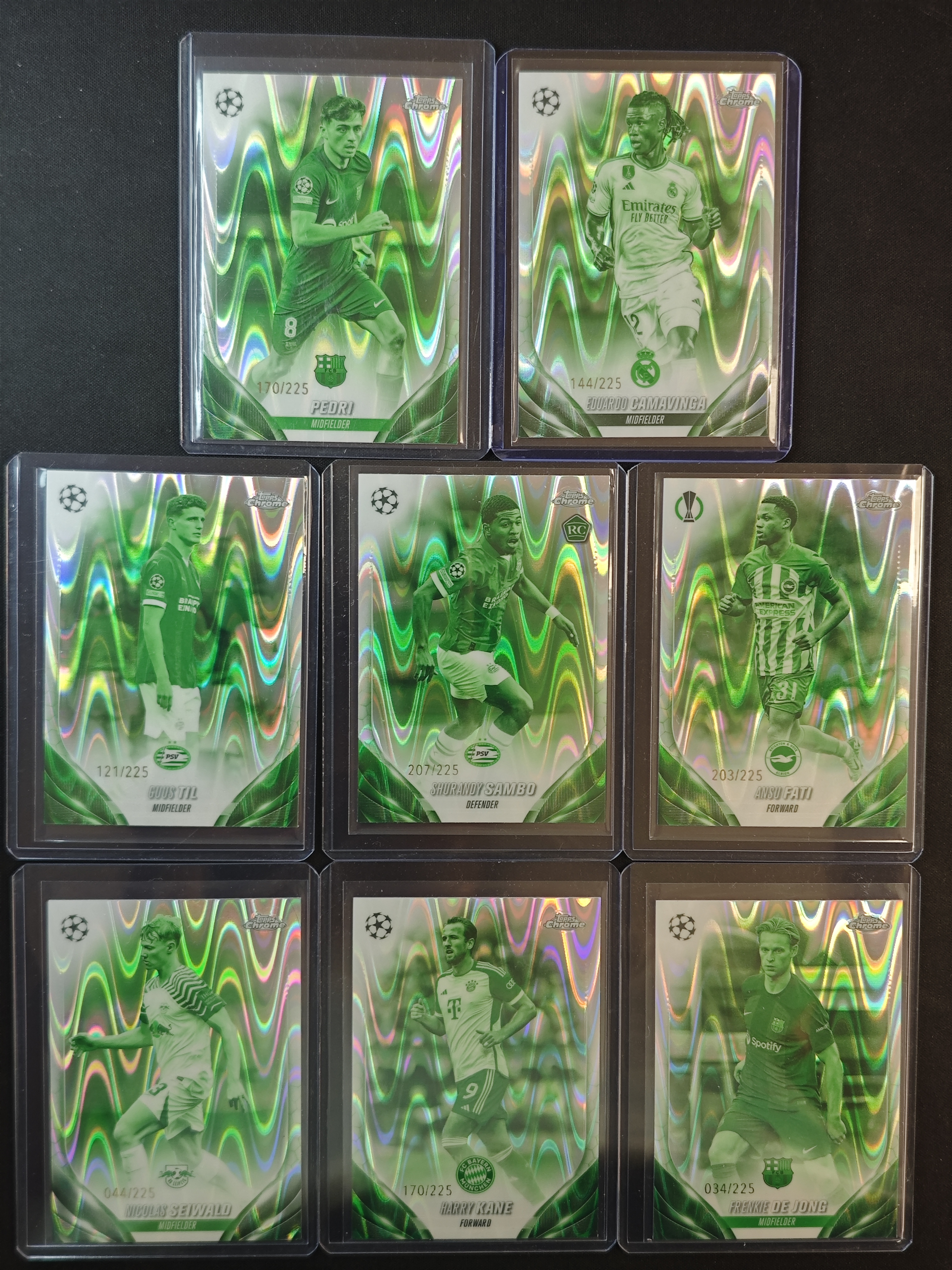 2023-24 Topps Chrome Pedri 欧冠TC 佩德里 卡马文加 哈里凯恩等 225编 荧光绿熔岩折 折射 base 八张打包 实卡精美 收藏必备 WG209