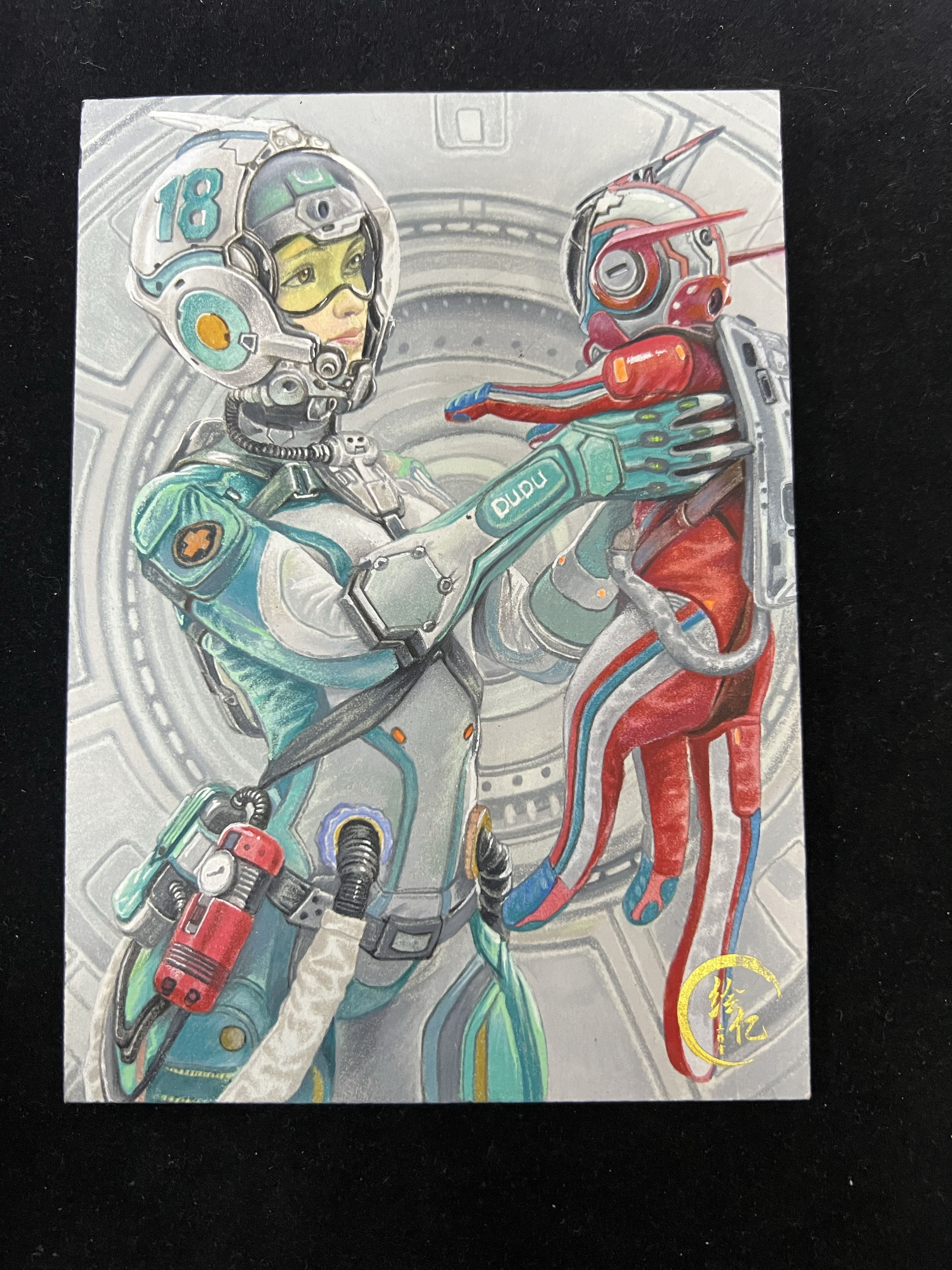 手绘卡 绘亿工作室 赛博朋克系列手绘 大卡手绘 宇航服少女 画师 肚肚 亲签 1of1 实卡精美 收藏凑套必备