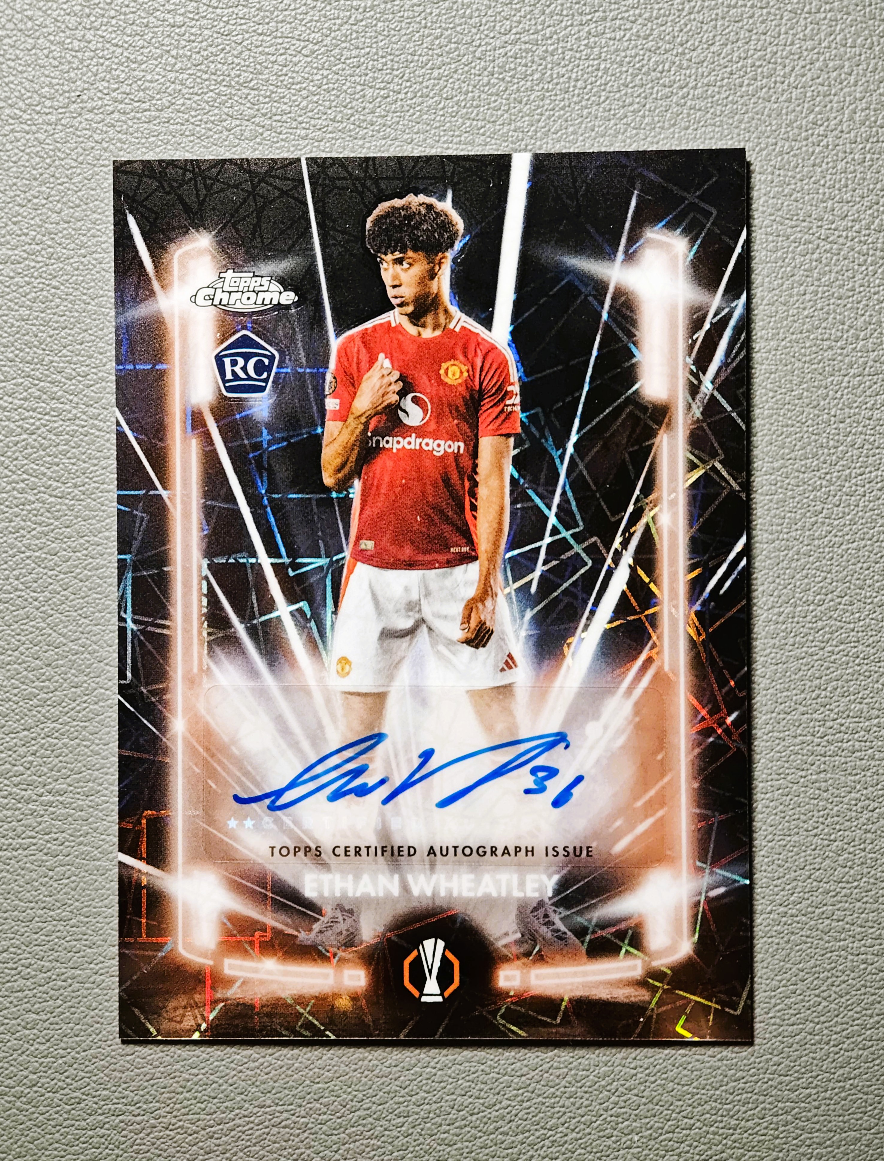 【闪电拍卖】2025 Topps UEFA Champions League Ethan Wheatley Chrome 欧冠 曼联 新秀 RC 惠特利 签字 潜力无限 黑折 镭射折 BG66